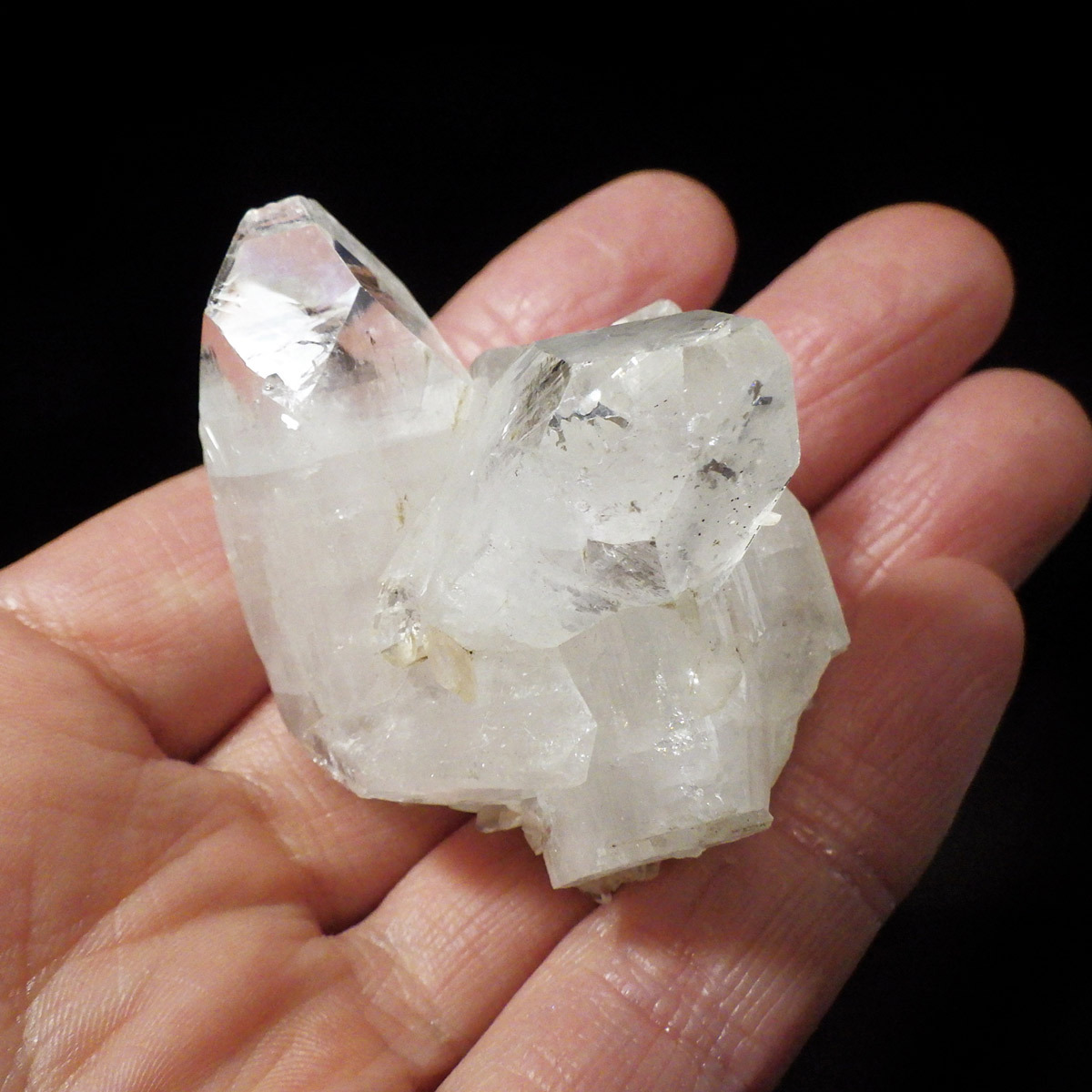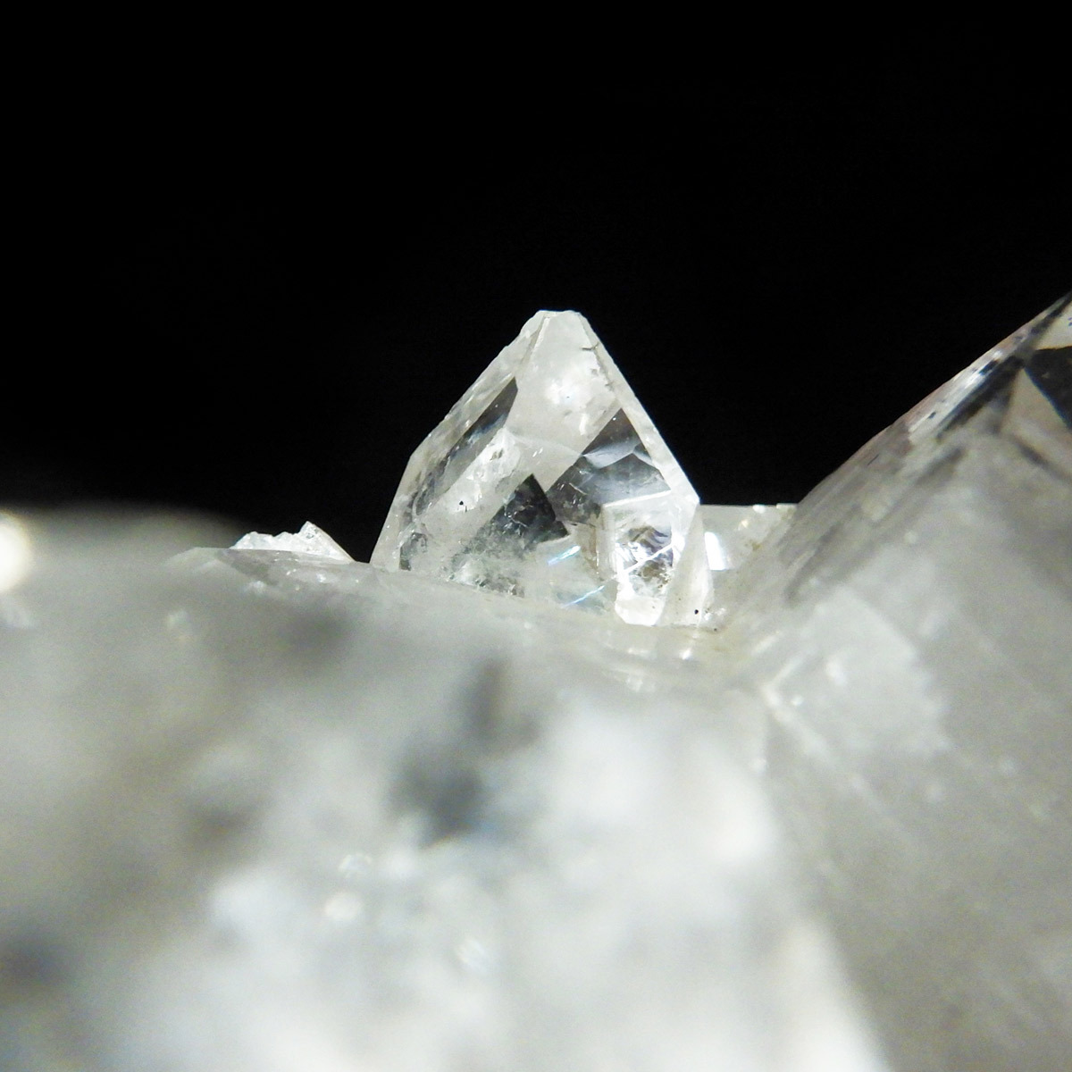 インド産のアポフィライト原石です。アポフィライトは、柱状や正方錘状の結晶を持ち、ひとつひとつの結晶が複雑に入り組んだ群晶が水晶とは違う神々しい輝きを魅せてくれます。透明度が非常に高くキラキラが神秘的できれいです。