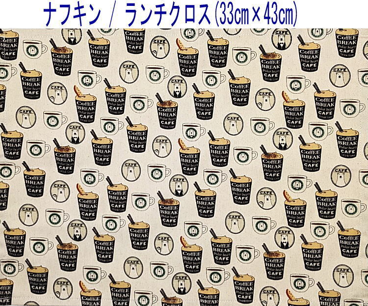 ナフキン・ランチクロス(33cm×43cm)長方形【くまカフェ柄 生成り】ランチマット ランチョンマット 日本製 ベア 珈琲 コーヒー 白くま