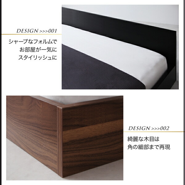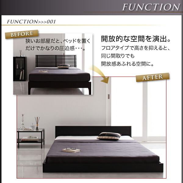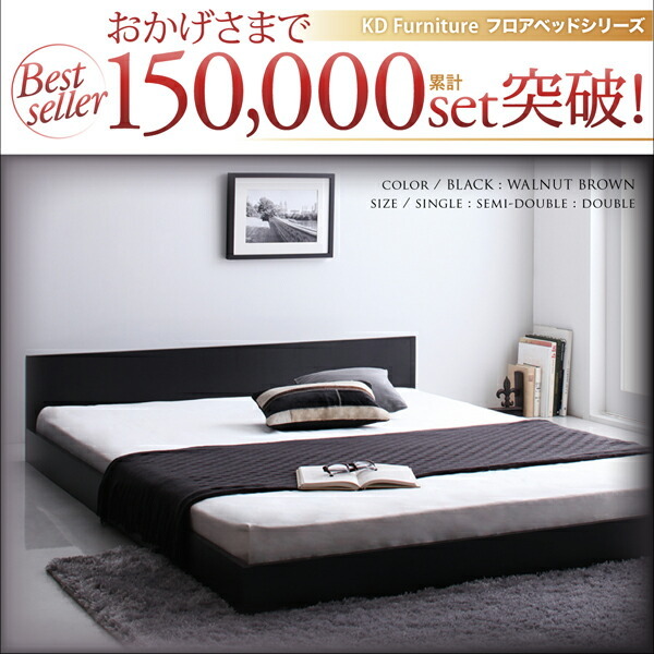 組立設置付き シンプルヘッドボード・フロアベッド llano ジャーノ スタンダードボンネルコイルマットレス付き セミダブル【フレームカラー:ブラック】【マットレスカラー:ブラック】です。