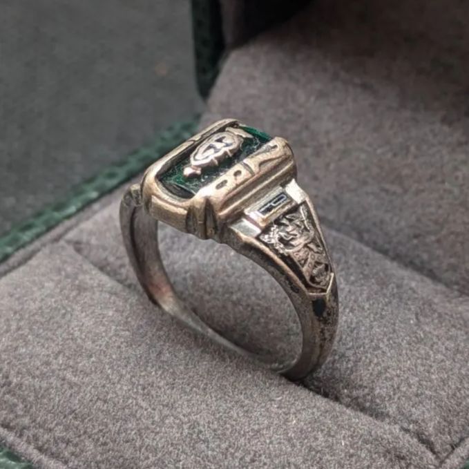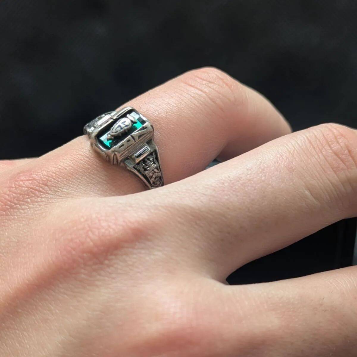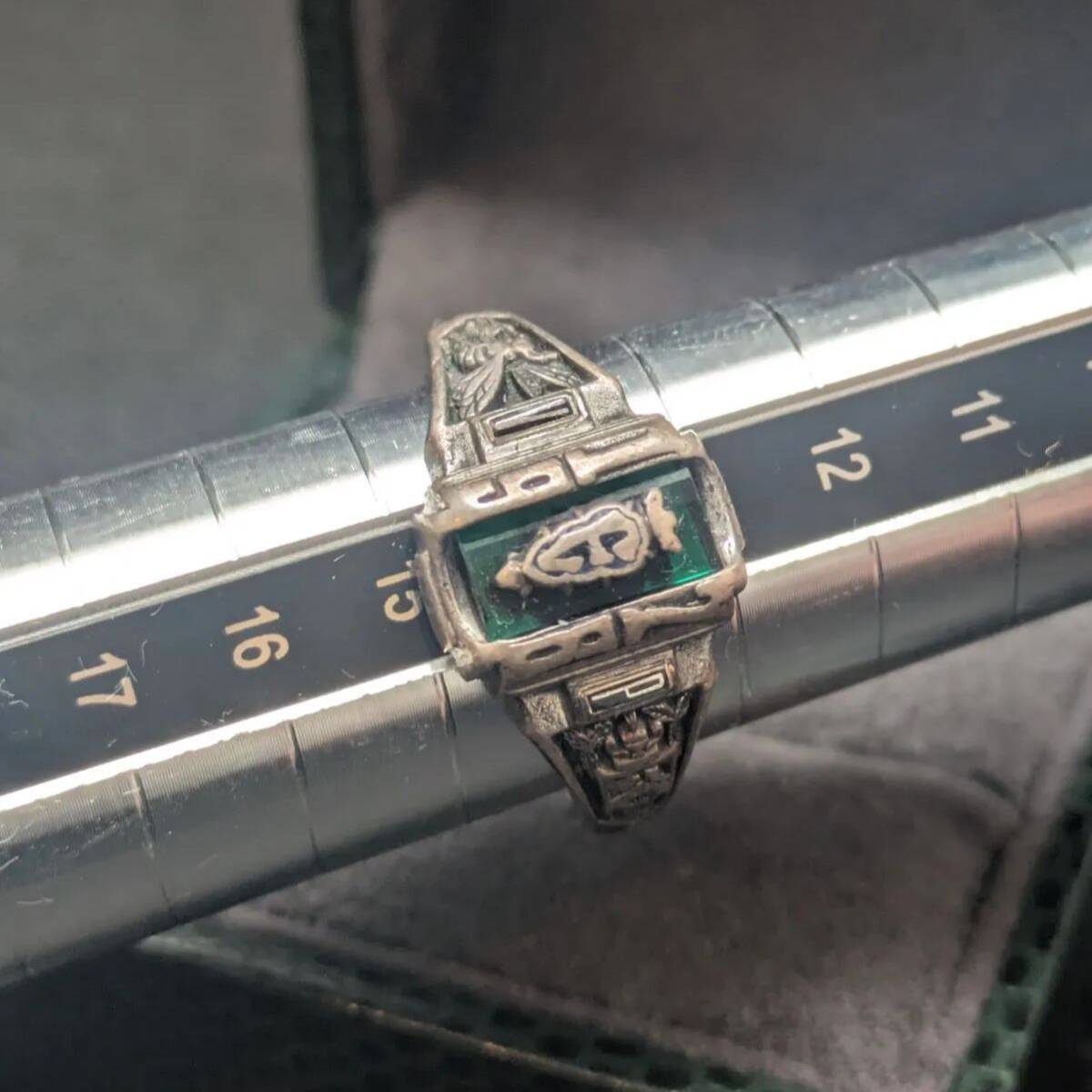 JOSTENS 1928年 スターリングシルバー925 13号 カレッジリング クラスリング メンズ レディース ユニセックス 緑 グリーン アクセサリー