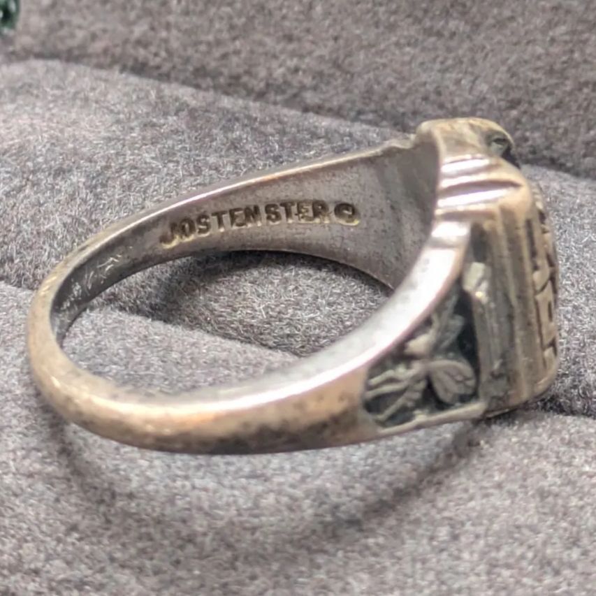 JOSTEN ジャスティン社 1928年 スターリングシルバー925 カレッジリング クラスリング メンズ レディース ユニセックス 緑 グリーン