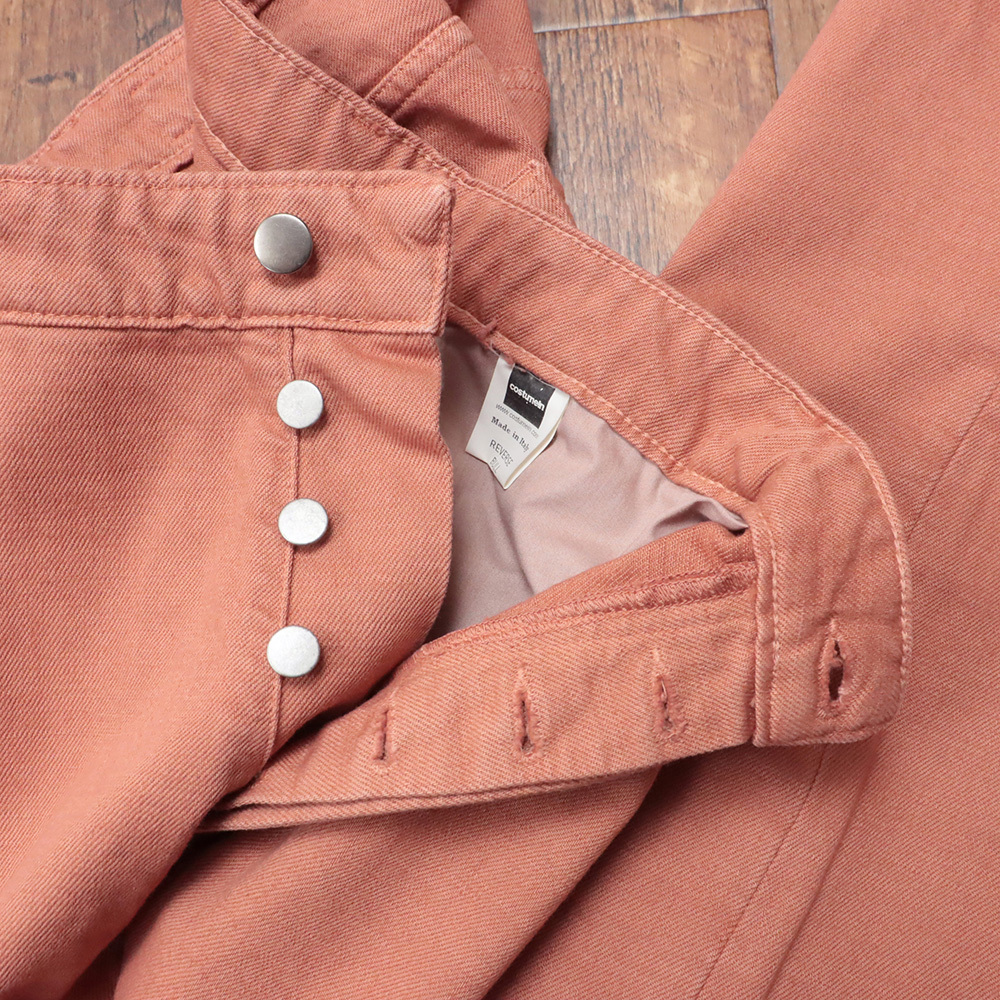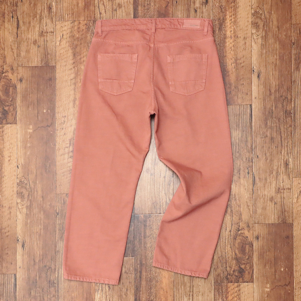| costumein/コストメインの ガーメントダイ ワイド デニムパンツ(34インチ)です。 お色は画像に近い褪せたオレンジです。 ※画像は同型のサイズ違いになりますので、ご了承下さい。 ハリとコシのある風合いが魅力のデニムパンツ。 ワイド&サルエルシルエットがラフなヌケ感を演出してくれるアイテムです。 仕様:5ポケット、ボタンフライ、製品染め加工 サイズ: 34 (日本サイズXL程度) 実寸:ウエスト92cm わたり幅34cm 裾幅22cm 股下68cm 股上30cm 素人採寸の為、多少の誤差はご了承下さい。 素材:綿100% 日本定価:33,000円+tax made in Italy ブランド紹介 【costumein/コストメイン】 イタリア・ナポリ発のシャツブランド。デザイナーは、トップメゾンの OEM生産を手掛ける老舗シャツメーカーの2代目、Alessandro Adamo氏。 ナポリの自社工場にて最高級の素材を使用し、伝統の技術に 時代を超えた発想を融合させたものづくりを行っています。 ナポリらしい陽気な色使いやリラックス感ある着心地も魅力。 主力製品であるシャツを中心に、アウターからボトムまで トータルで展開しています。 ■ 自宅保管に御理解頂ける方、細かな事を 気になさらない方よろしくお願い致します。 | |||
