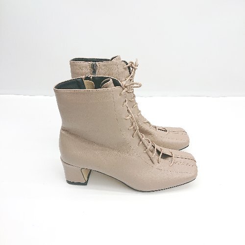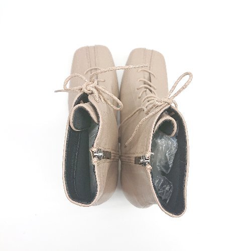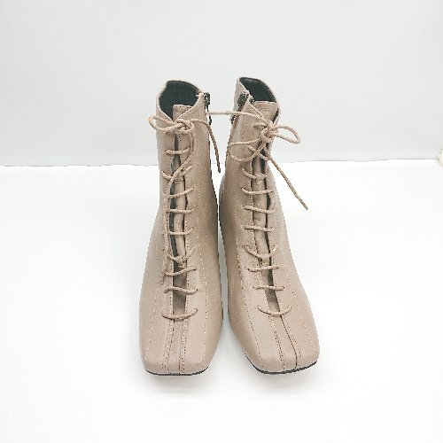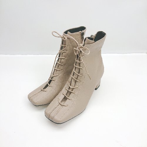 ■ ⊇ NEUNA スクエアトゥ レースアップ ミドル丈 ヒールブーツ サイズM モカブラウン系 レディース E