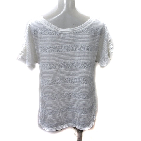 ジルスチュアート JILL STUART カットソー 半袖 レース ボーダー M 白 ホワイト /YI レディース