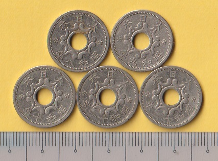 5銭ニッケル貨 《昭和8・9・10・11・12年》   5枚 コンプリート