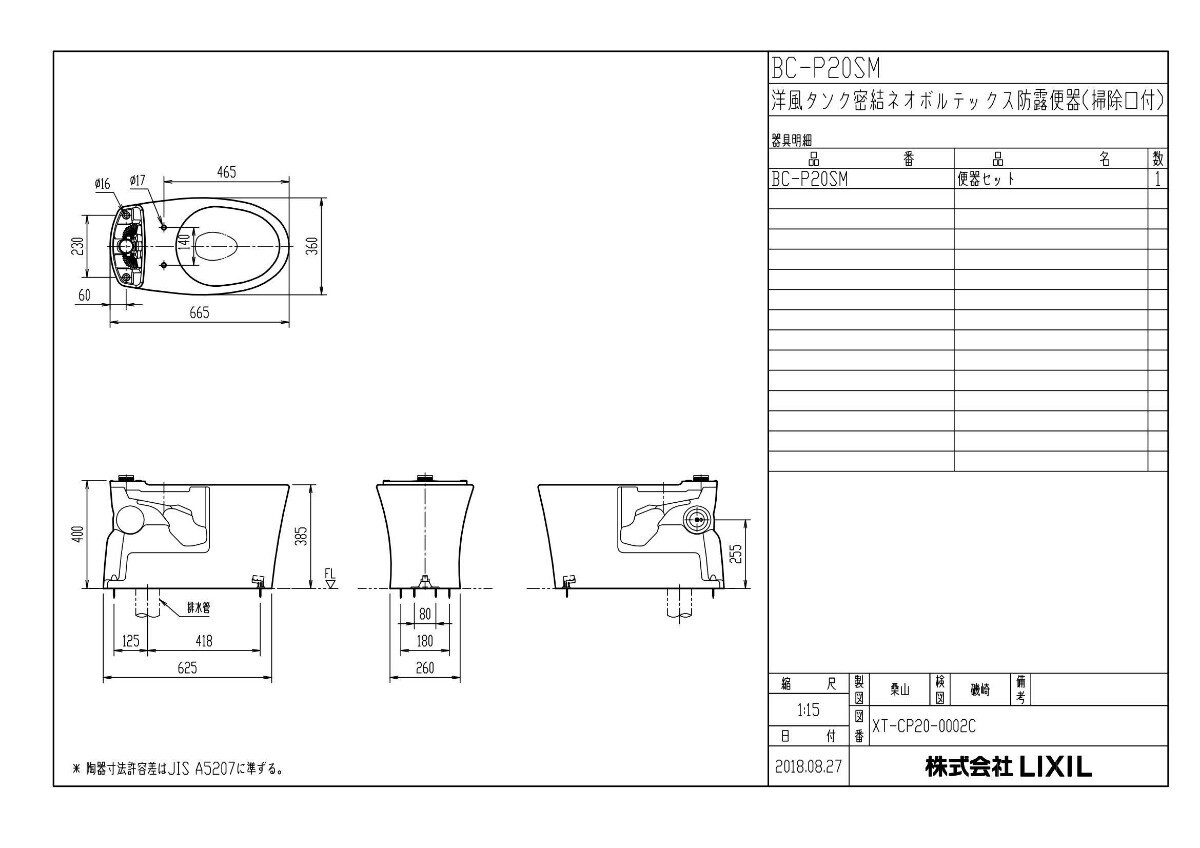 LIXIL INAX 掃除口付き便器 BC−P20SM/BW1(白) 床排水芯200mm