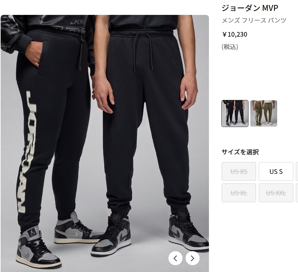 JORDANのMVPモデル、ブラックの2XLスウェットパンツ。
