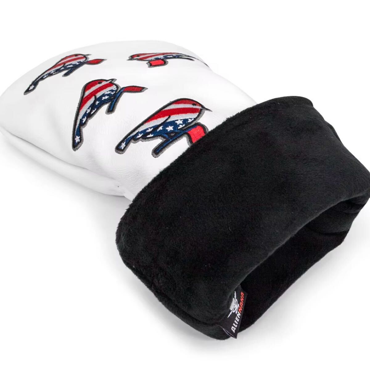 アメリカ国旗モチーフのバード柄が印象的な、BIRDIEブランドのユーティリティ用ヘッドカバーです。
