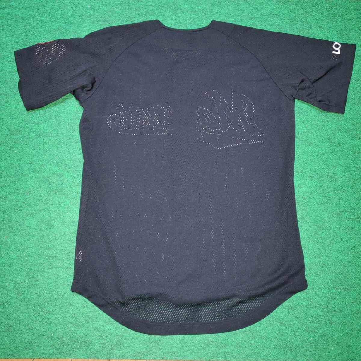 カラーは黒で胸のチーム名と袖の球団名とエンブレムは刺繍です。