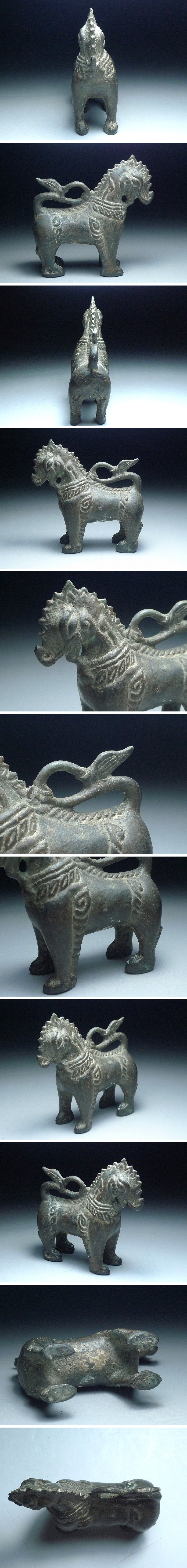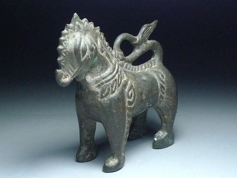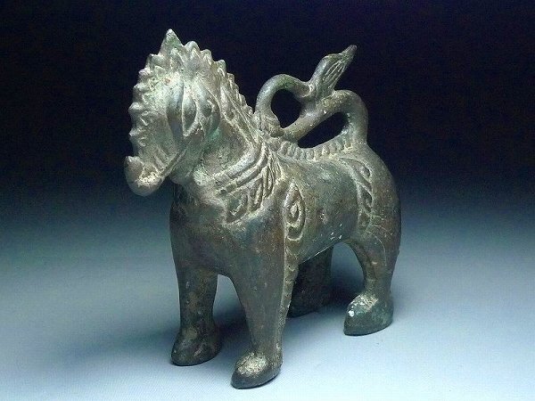 古銅 ブロンズ製 神獣像 ライオン 獅子 シンハ 置物 タイ 時代物 古道具