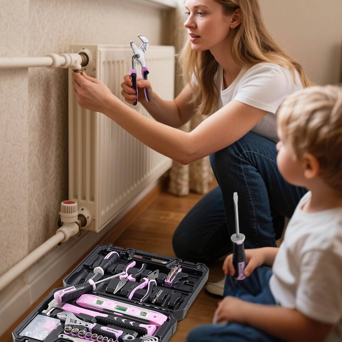 豊富なセット内容: ドライバー、レンチ、ハンマー、カッター、巻尺など、日常的な作業に必要な工具が108点揃っています。