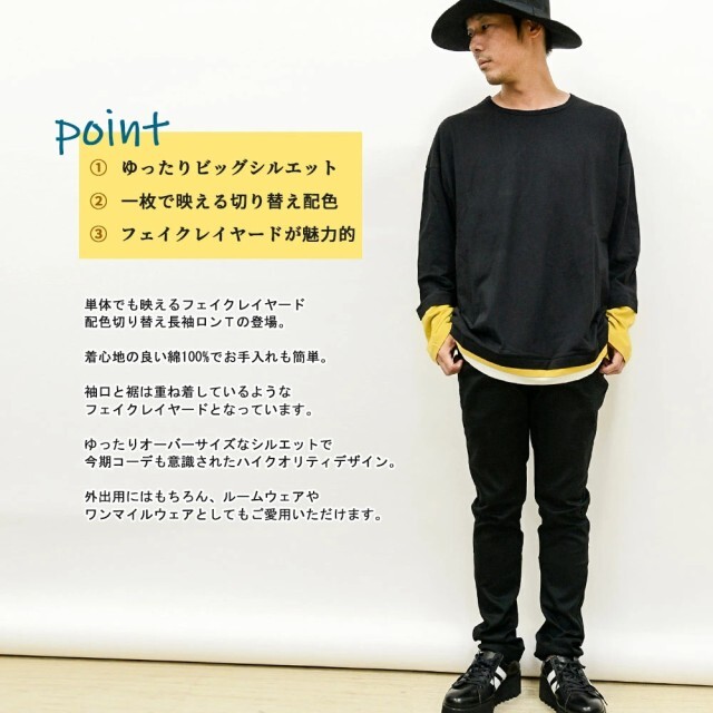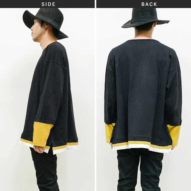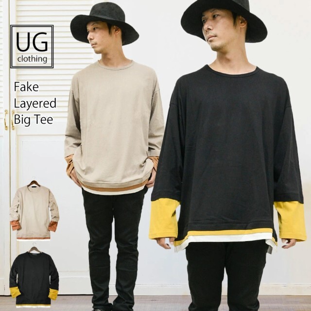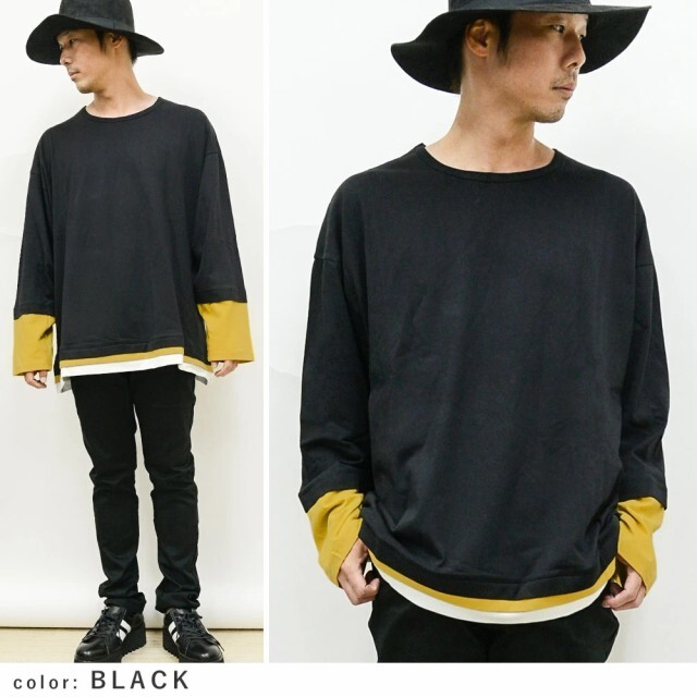 丸首 / クルーネック / オーバーサイズ / ビッグシルエット / 重ね着風 / 無地 /