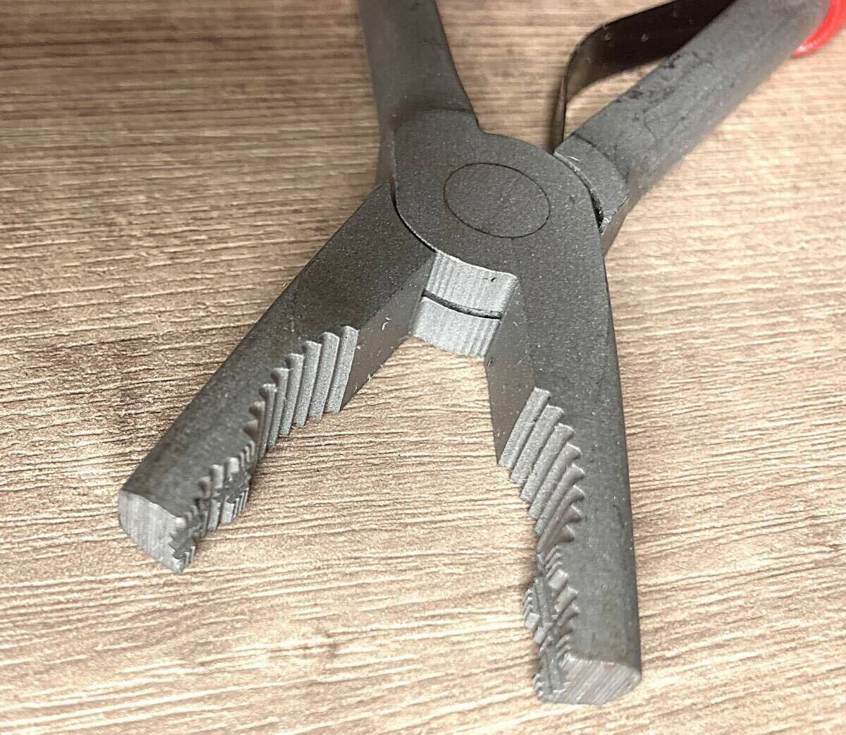 先端の特殊な形状の刃で舐めたネジの頭をつかんで回すプライヤーです。