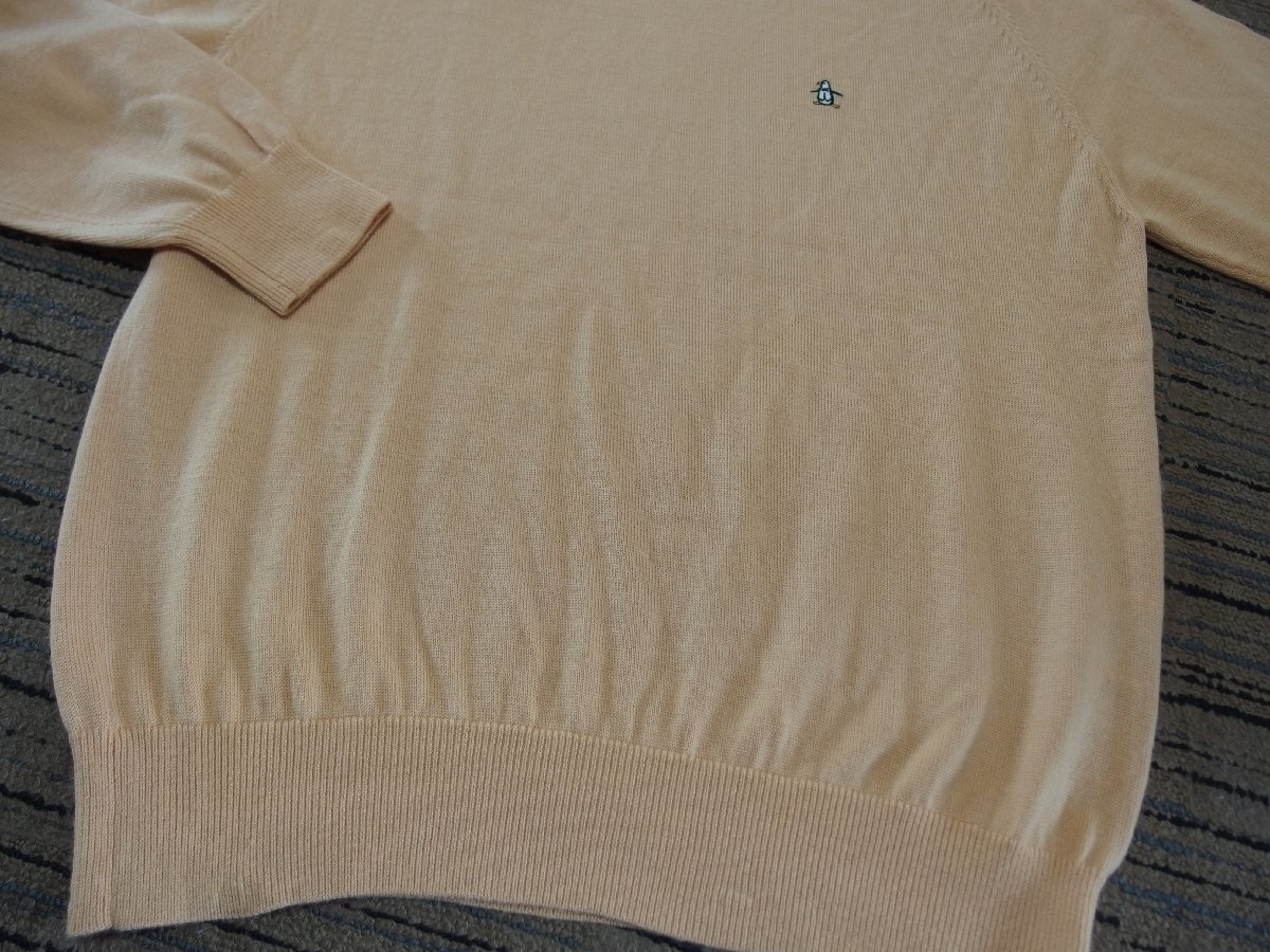 Munsingwear(マンシングウェア)のウール100%クルーネックニットセーターです。 胸元にはマンシングのキャラクター刺繍が入っているシンプルなデザインです。 前身頃の胸元中央辺りや腹部辺りにうっすらと小さいシミ汚れがあります。 サイズ表記はMです。 (平置き採寸) 肩幅:ラグラン袖の為測定不可 身幅:(脇下)約47cm 袖丈:約67cm(襟元から袖口) 着丈:約60cm 素人採寸ですので多少の誤差はご了承ください。 カラーはオレンジ系を基調。 微妙なお色、デザインですので写真をよく参照してください。 (素材) 毛:100% 中古品ですので、細かい汚れや傷など気にされる神経質なかたの入札はご遠慮ください。 画像に写っているものが全てです。 状態は画像にてご確認下さい。 また、説明にはない汚れやキズなどもある場合がございます。 予めご了承の上、気にされる神経質なかたの入札はご遠慮ください。 ノークレーム、ノーリターンでお願いします。 (衣類について) レディース・メンズ又はユニセックス等の区別に関してランドリータグ等に記載がない場合、弊社の判断でカテゴリー化しています。 尚メンズ・レディースの判断は弊社では出来かねますので、サイズに関しましてはメーカーサイズの他に商品を実際に測った平置き採寸を必ずご確認ください。(各メーカーによりサイズの採寸が異なります。) |