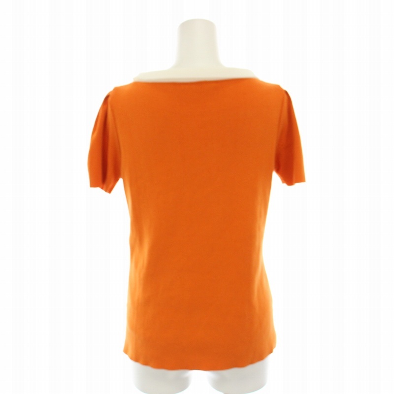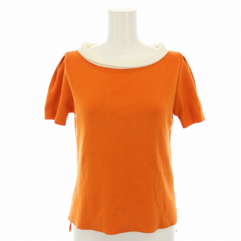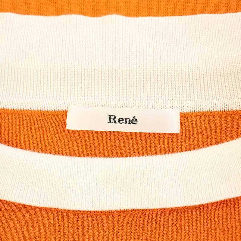 ルネ Rene ロールカラー半袖ニット セーター 36 オレンジ 白 ホワイト 6722780 /YT レディース