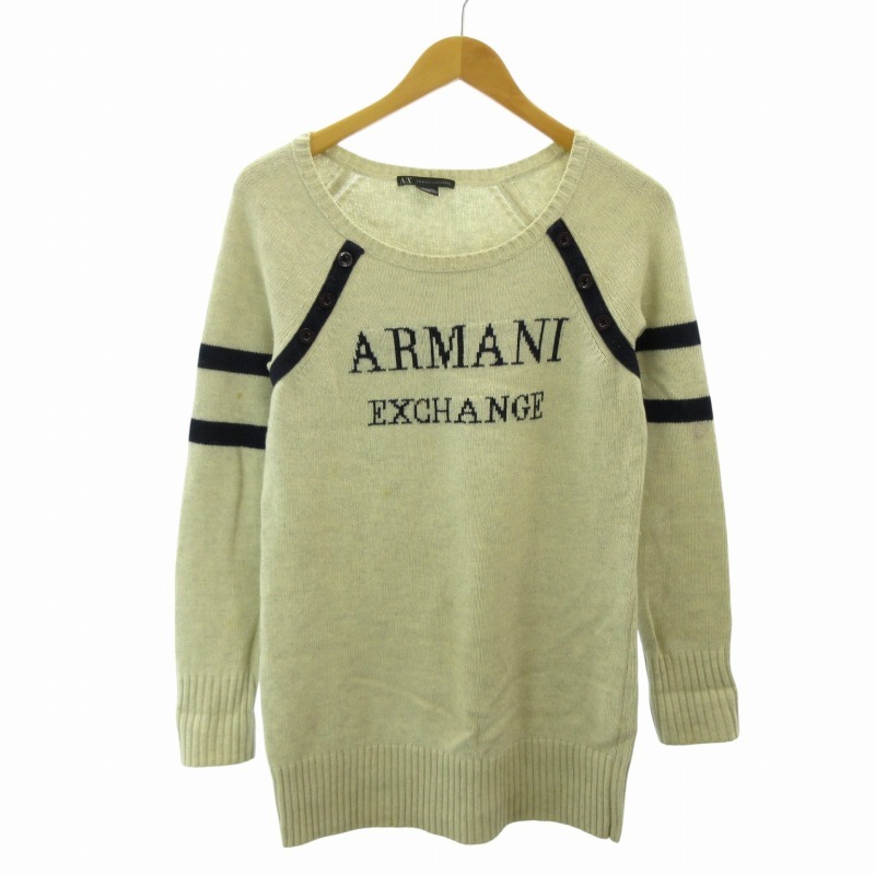 アルマーニエクスチェンジ A/X ARMANI EXCHANGE ロゴ ニット セーター ボタン 長袖 M 白 アイボリー 紺 STK 0516