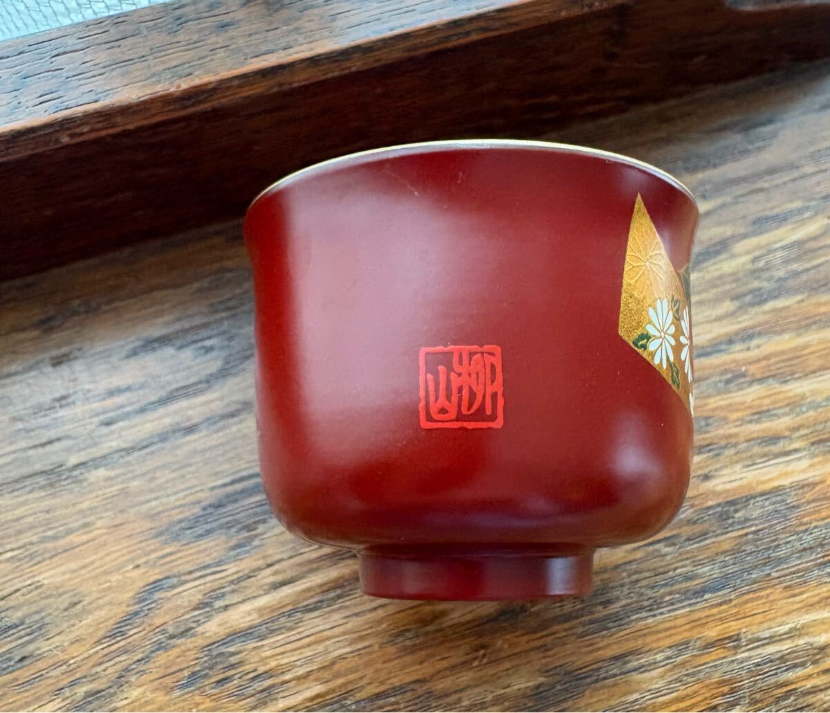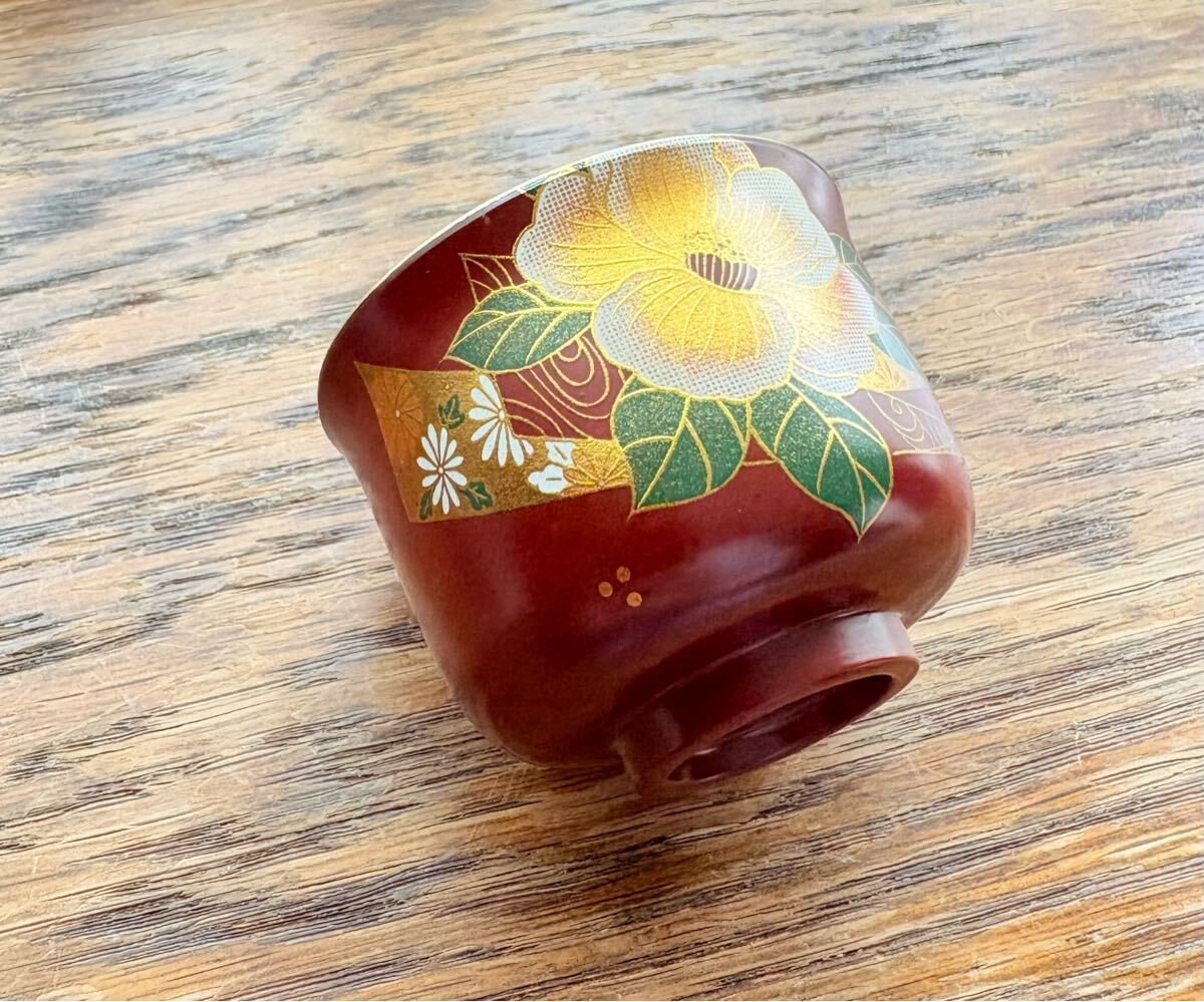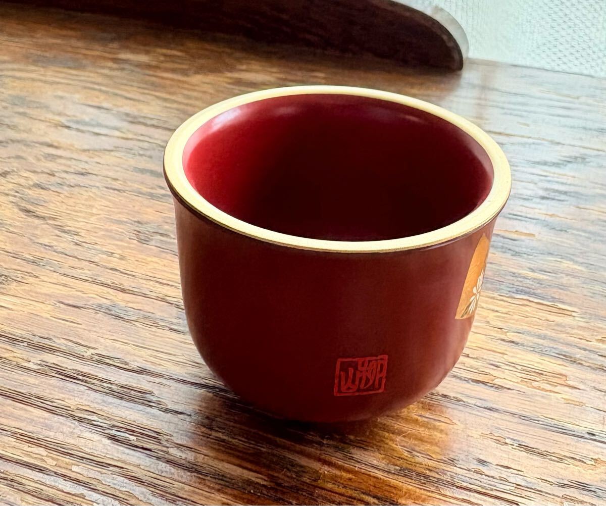 お猪口 漆器 柳山作 牡丹絵 1客 ぐい呑み 漆工芸 酒杯 蒔絵 金彩 杯 輪島塗り 未使用自宅保管品