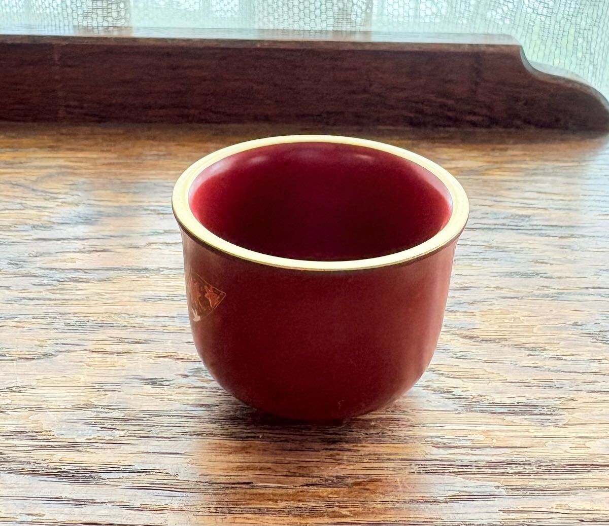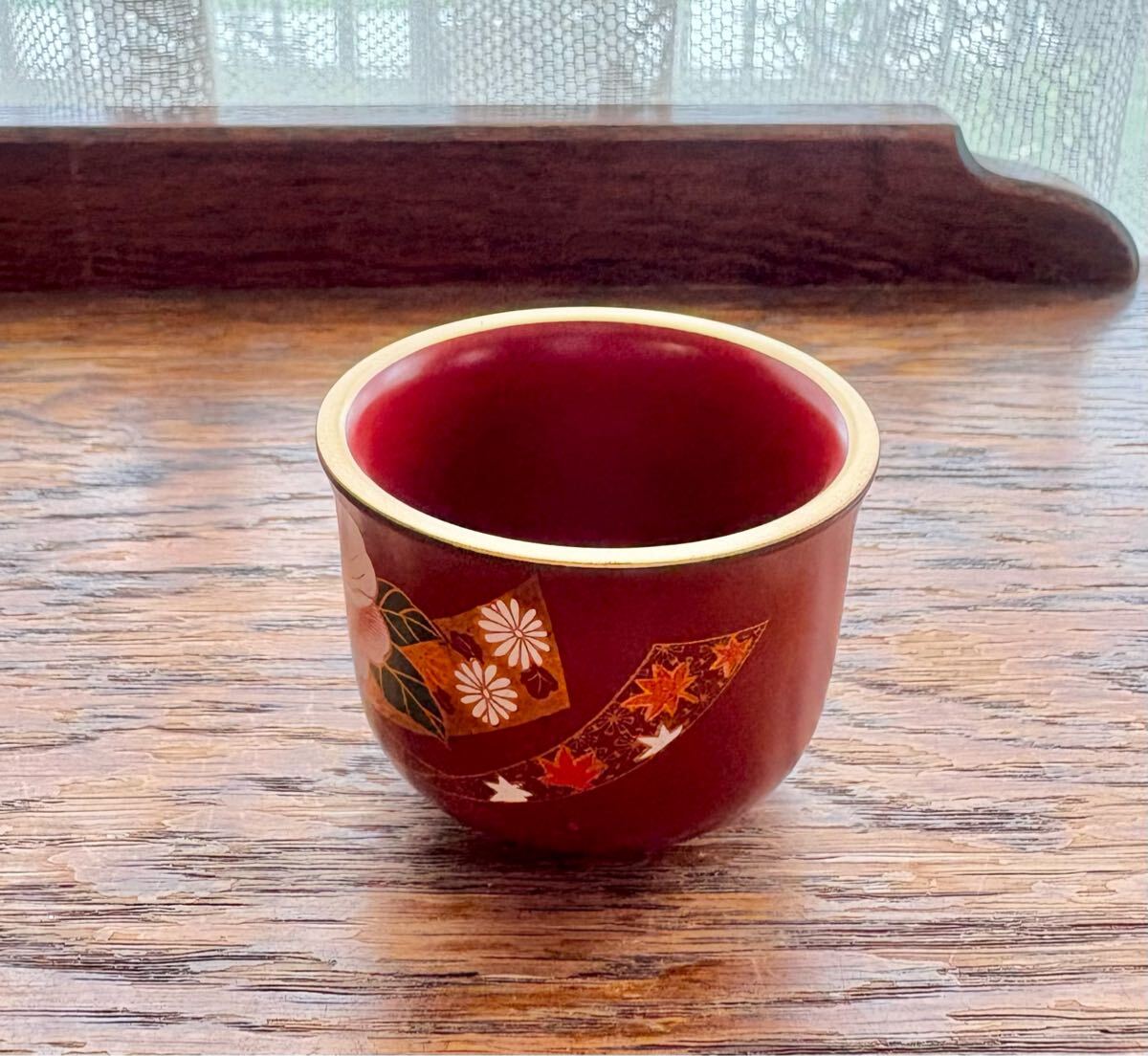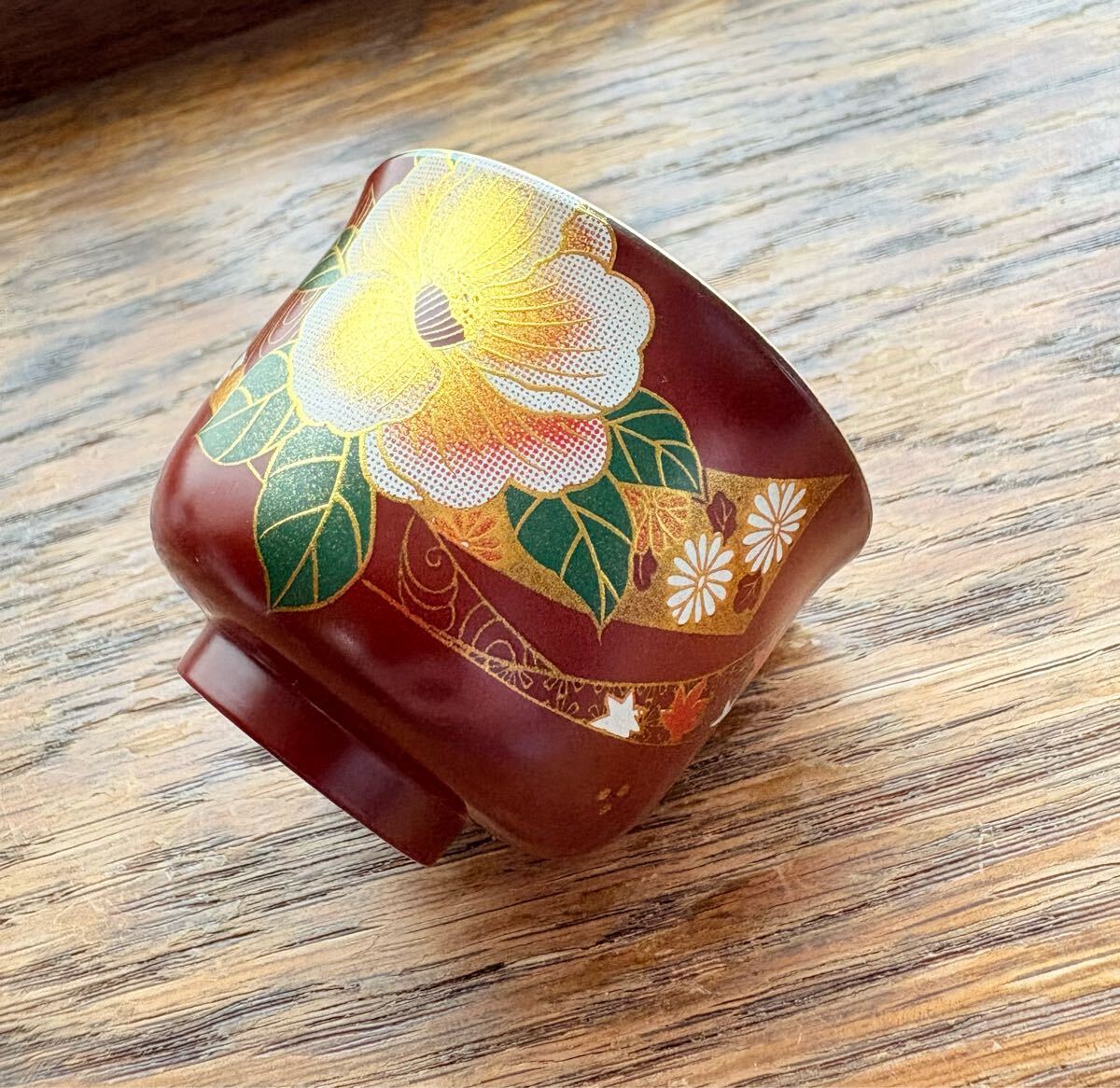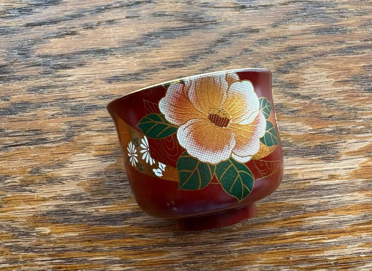 牡丹の絵柄の漆器のぐい呑み 1客です