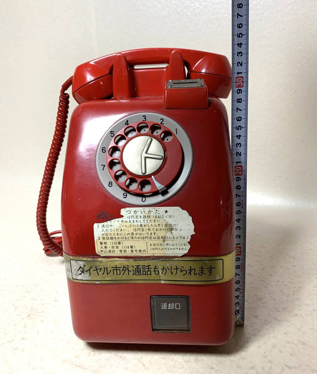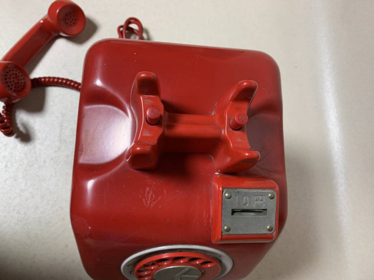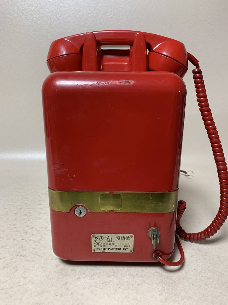 田村電機製作所 ダイヤル式電話機 670-A1 カギ付き 公衆電話 赤電話 昭和45年 当時物