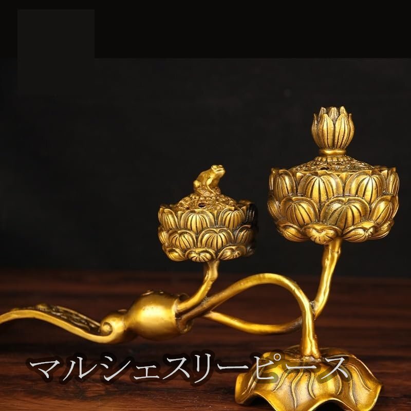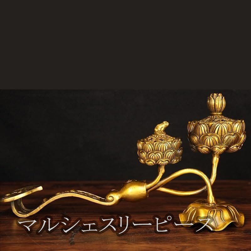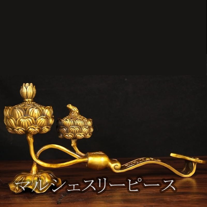 柄香炉 蓮の香炉 蓮の形 長さ31cm寺院仏具 密教法具 真鍮製 蓮華型柄香炉 護摩