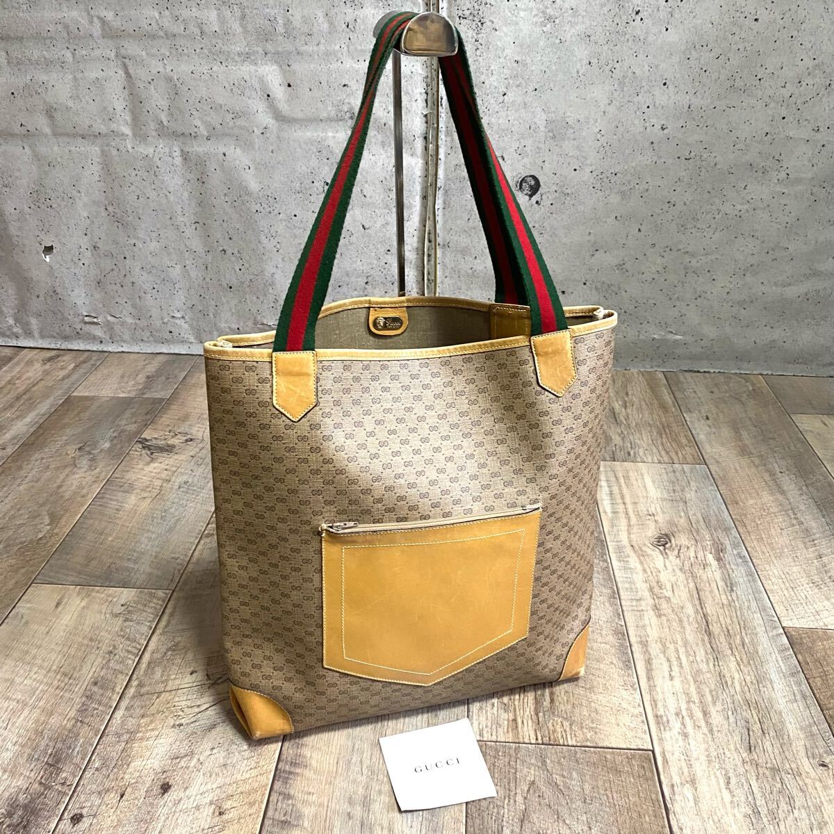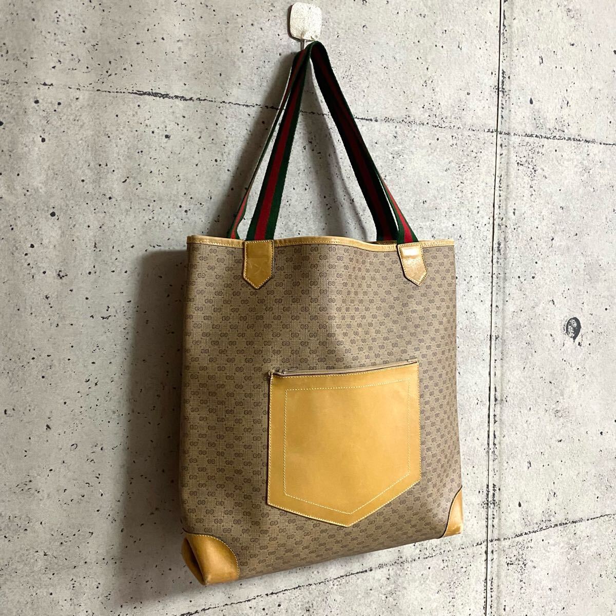 イタリア製 素材:本革 レザー カラー:ブラウン/ベージュ サイズ:縦幅約22cm、横幅約38cm、マチ約13cm、持ち手高さ約24cm 付属品なし※本体のみ 外側 ジップポケット×1 #GUCCI #グッチ #ハンドバッグ #トートバッグ #レザーバッグ #マイクロGG #シェリーライン #A4 #オールドグッチ #レディース #ビジネス #カジュアル #オールド #ヴィンテージ #人気 |