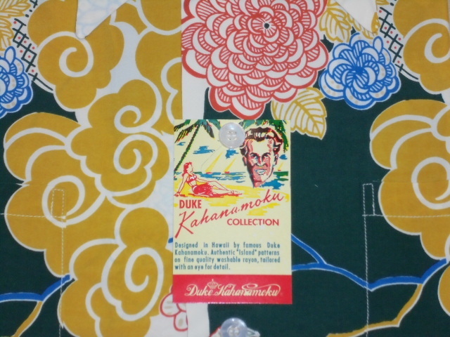 菊などのオリエンタルなイメージの花で構成されたデューク・ブランドの中でも非常に異色で珍しいデザイン。ボーダー状の柄をベースとして、その上にデフォルメして描かれた花、さらに雲など柄のアクセントとなるモチーフが独特のタッチで表現されている。アメリカ本土の流行を常に意識し、柄のデザインや色使いにもそれらの流れを取り入れていたデューク・ブランドらしさが表れたオリエンタル・デザイン。
