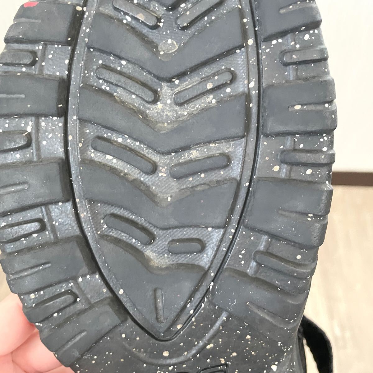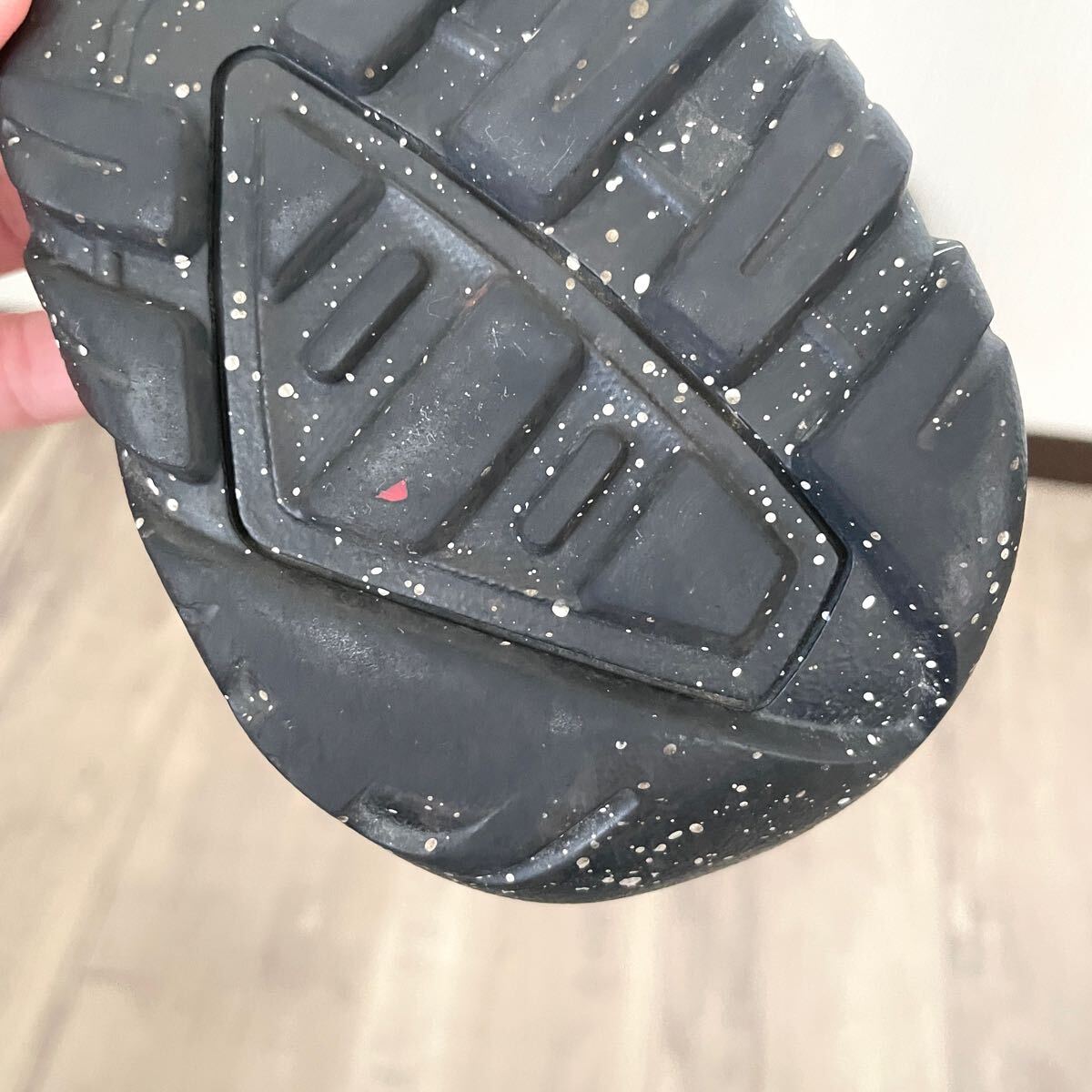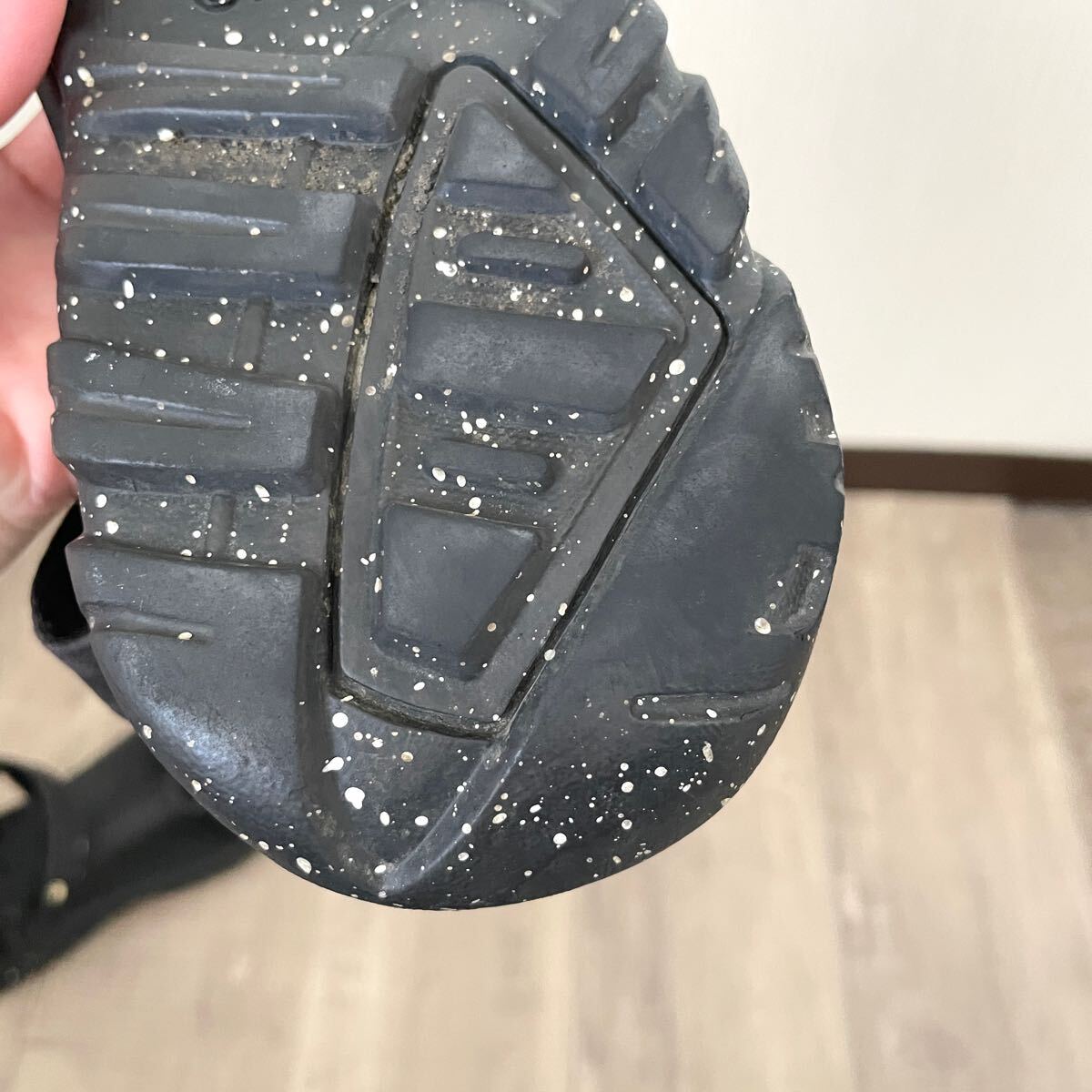 アウトソールの減りは少なめですが、右足かかとに減りございます。