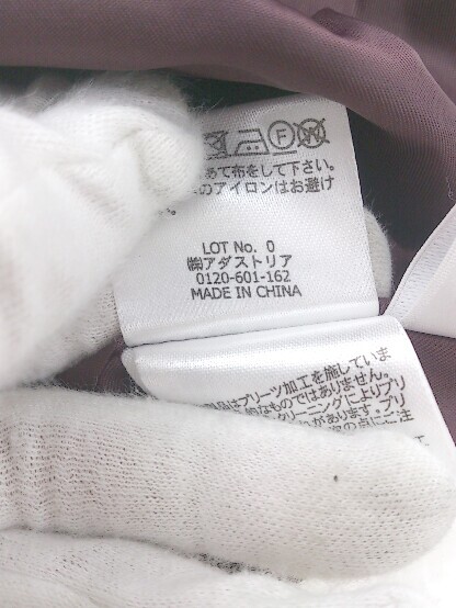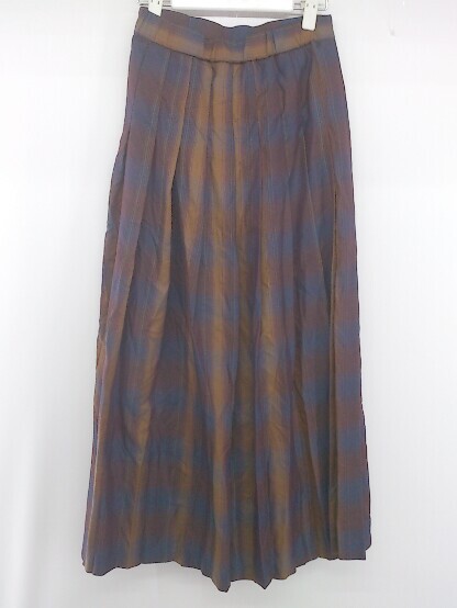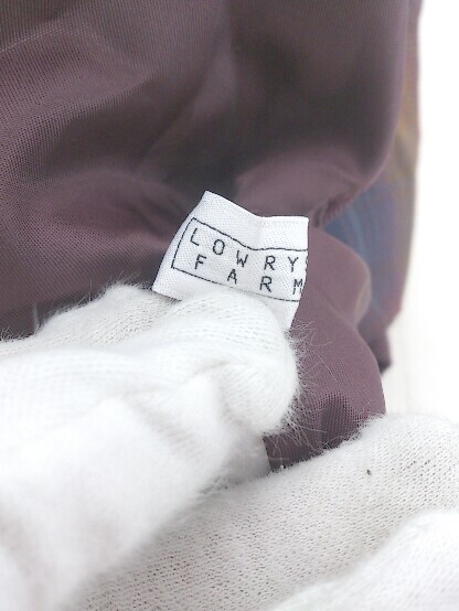 ◇ LOWRYS FARM ストライプ 総柄 ロング タック フレア スカート サイズM ボルドー マルチ レディース P