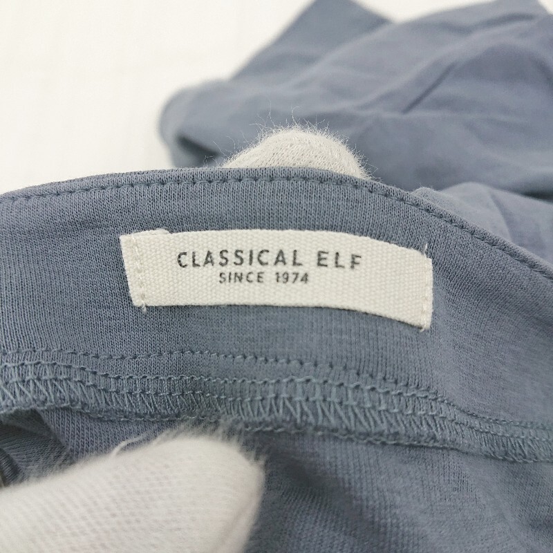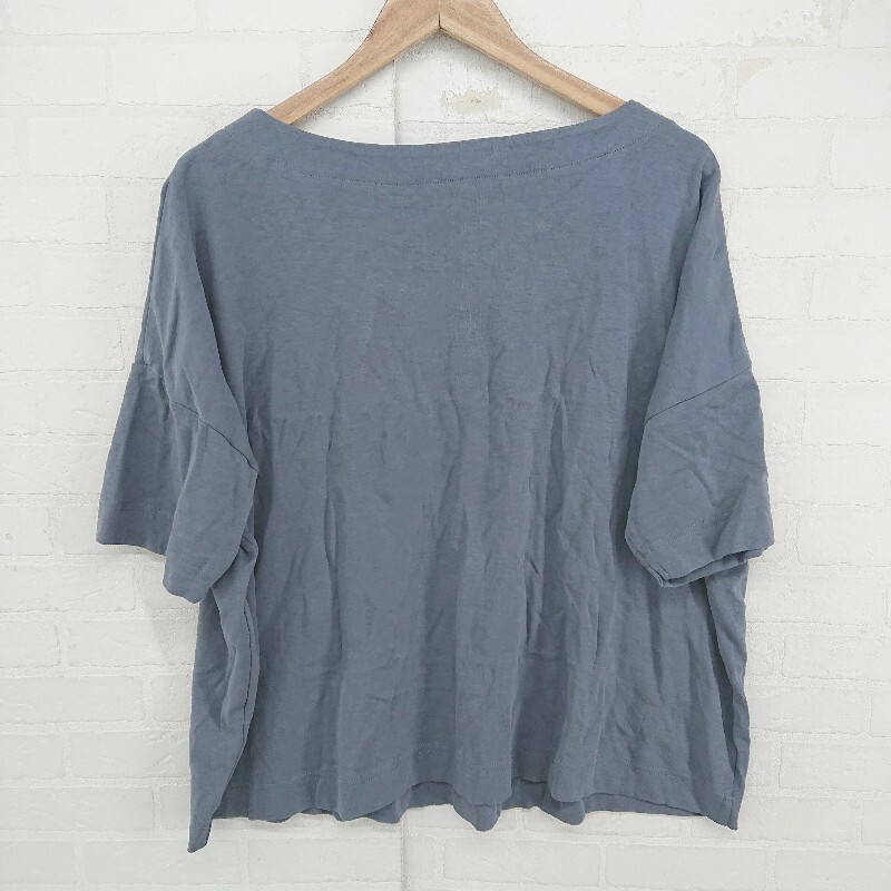 ◇ classicalelf クラシカルエルフ ボートネック 無地 シンプル 半袖 カットソー サイズL ブルー レディース E