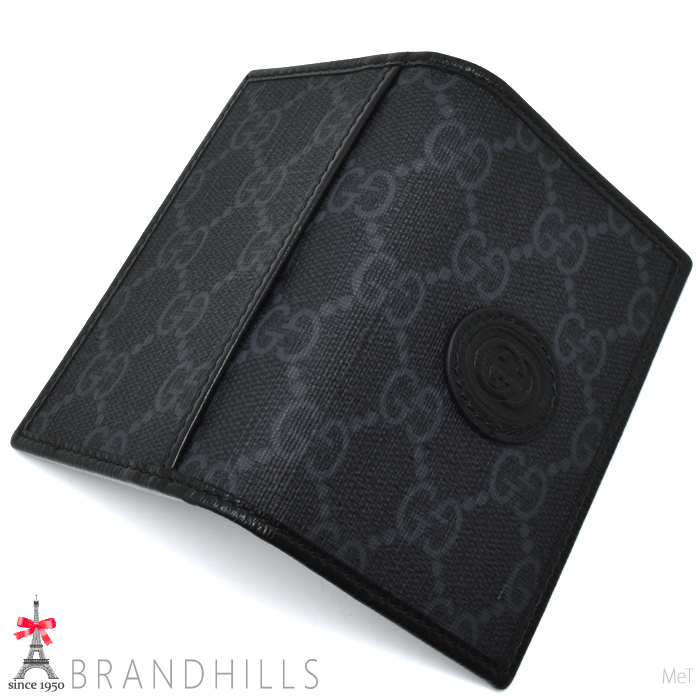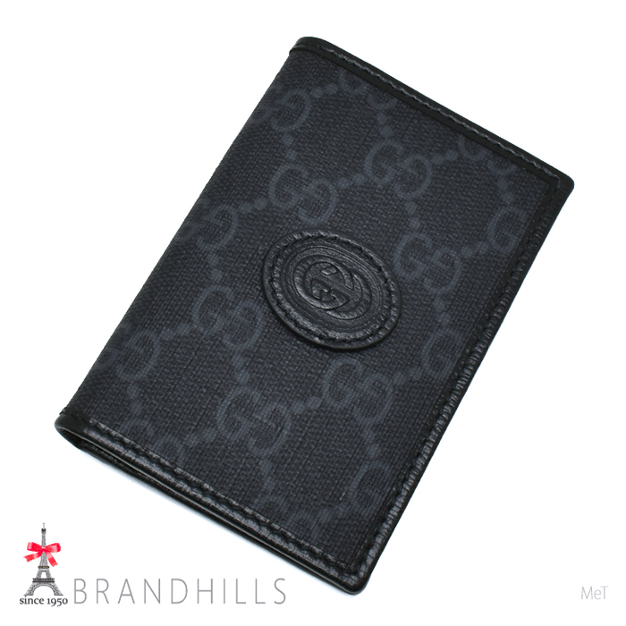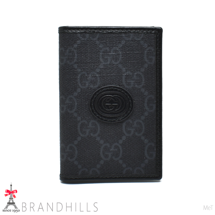 商品名グッチ カードケース GGスプリーム インターロッキングG レザー ブラック グレー
