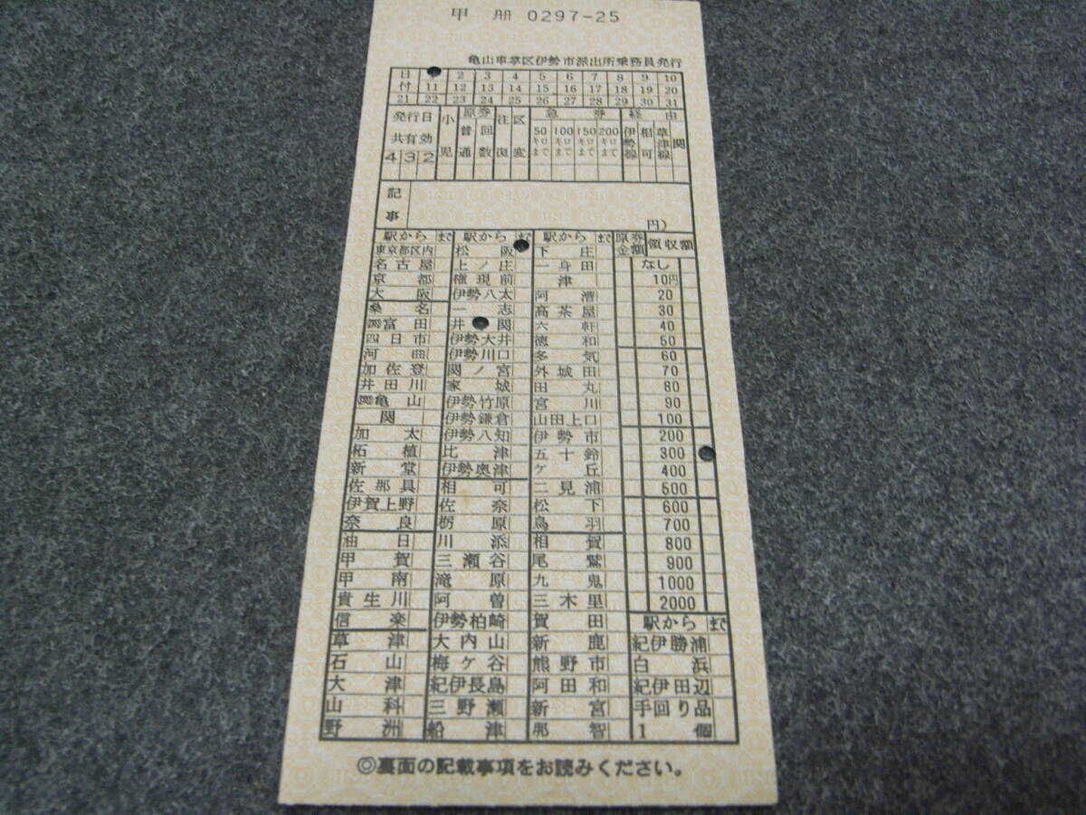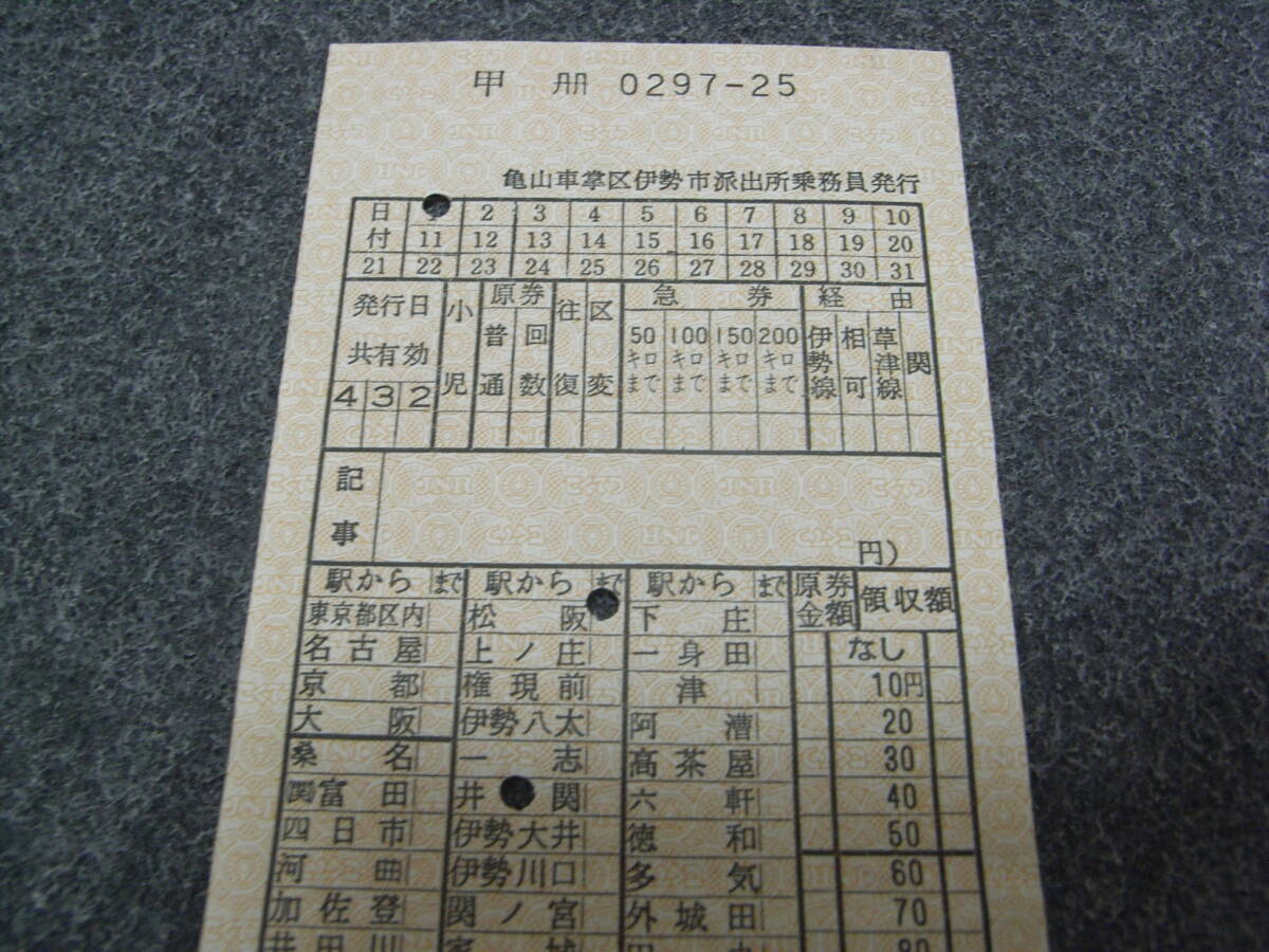 車内補充券 亀山車掌区伊勢市派出所乗務員発行 0297-25