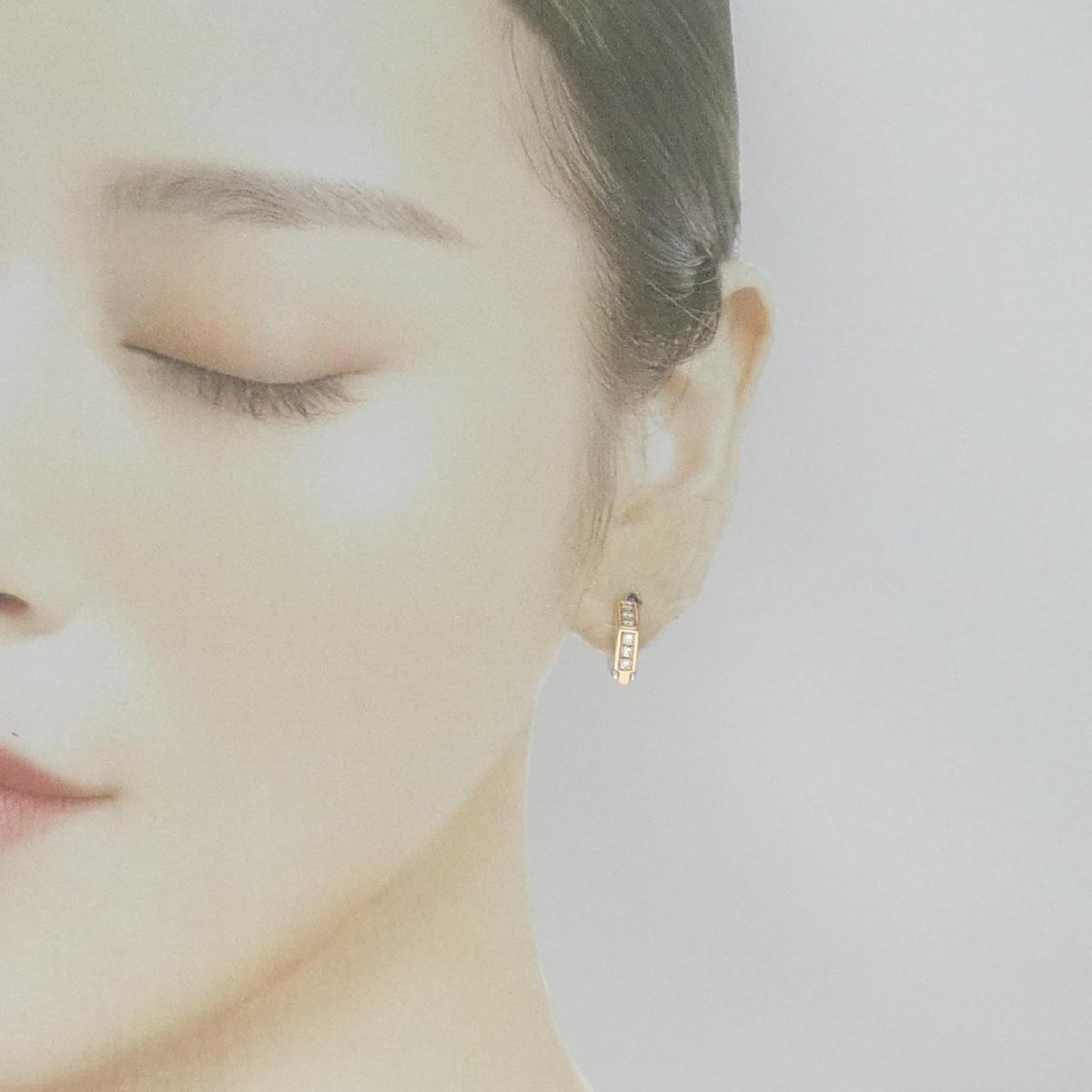 クリアに煌めくダイヤモンドをセッティング。すっきりとした耳元に仕上げてくれます。