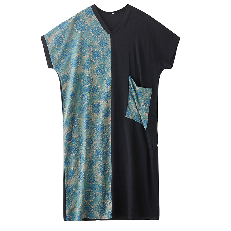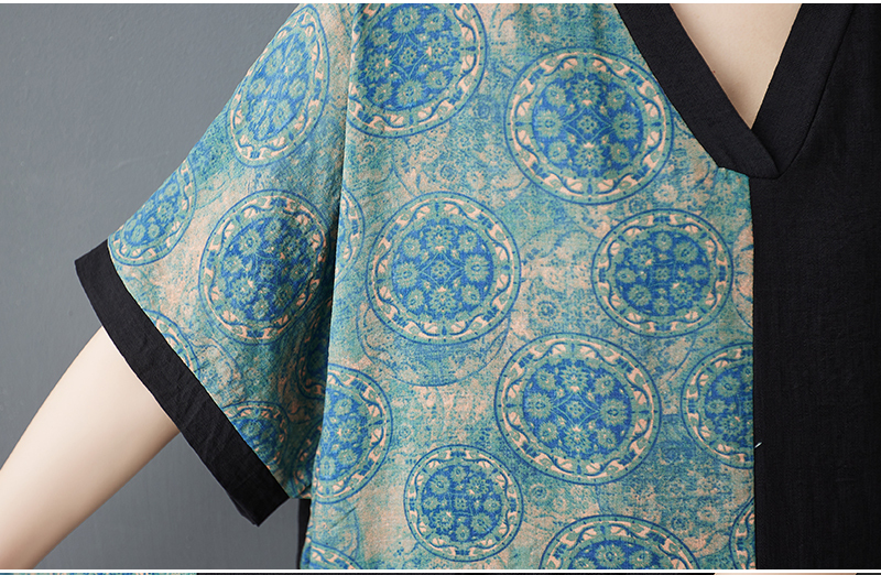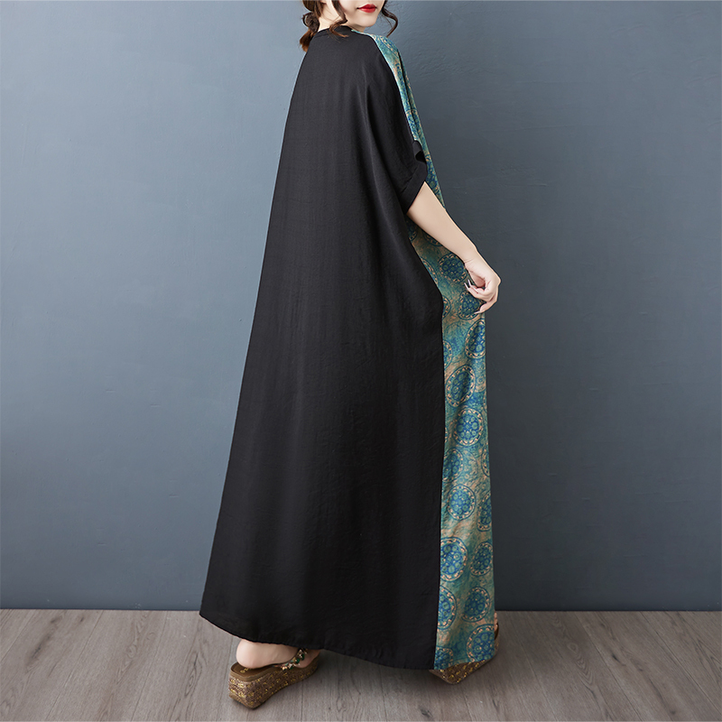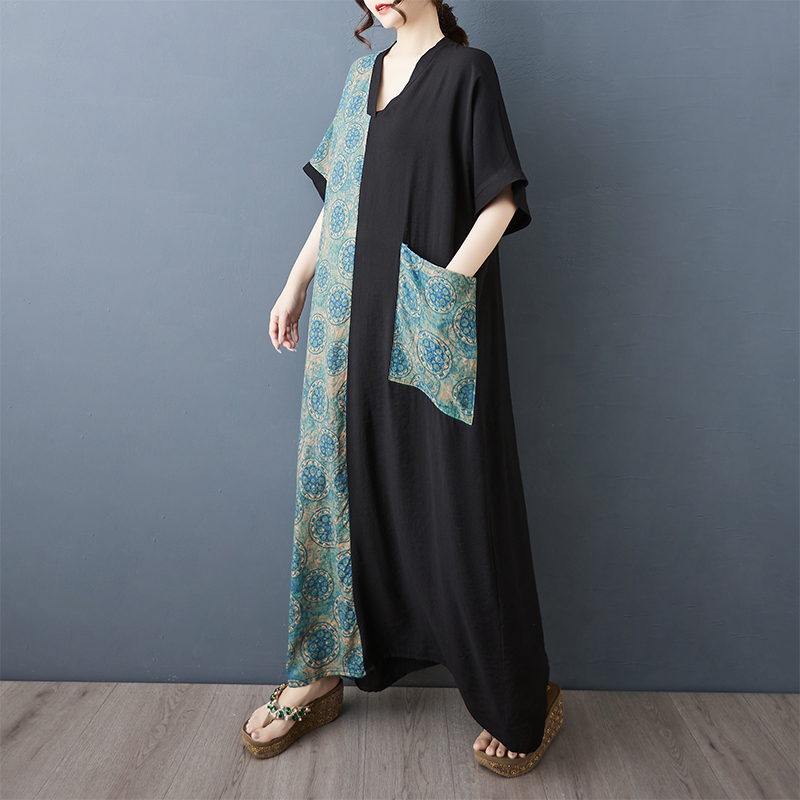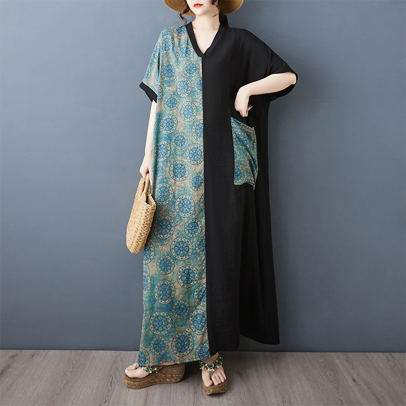 「同梱1万円送料無料」夏*新作*カジュアル*20304050代*ゆったり大きいサイズ*花柄切り替え半袖ロングマキシワンピース