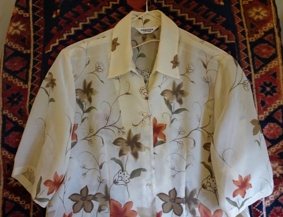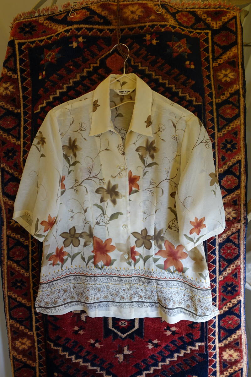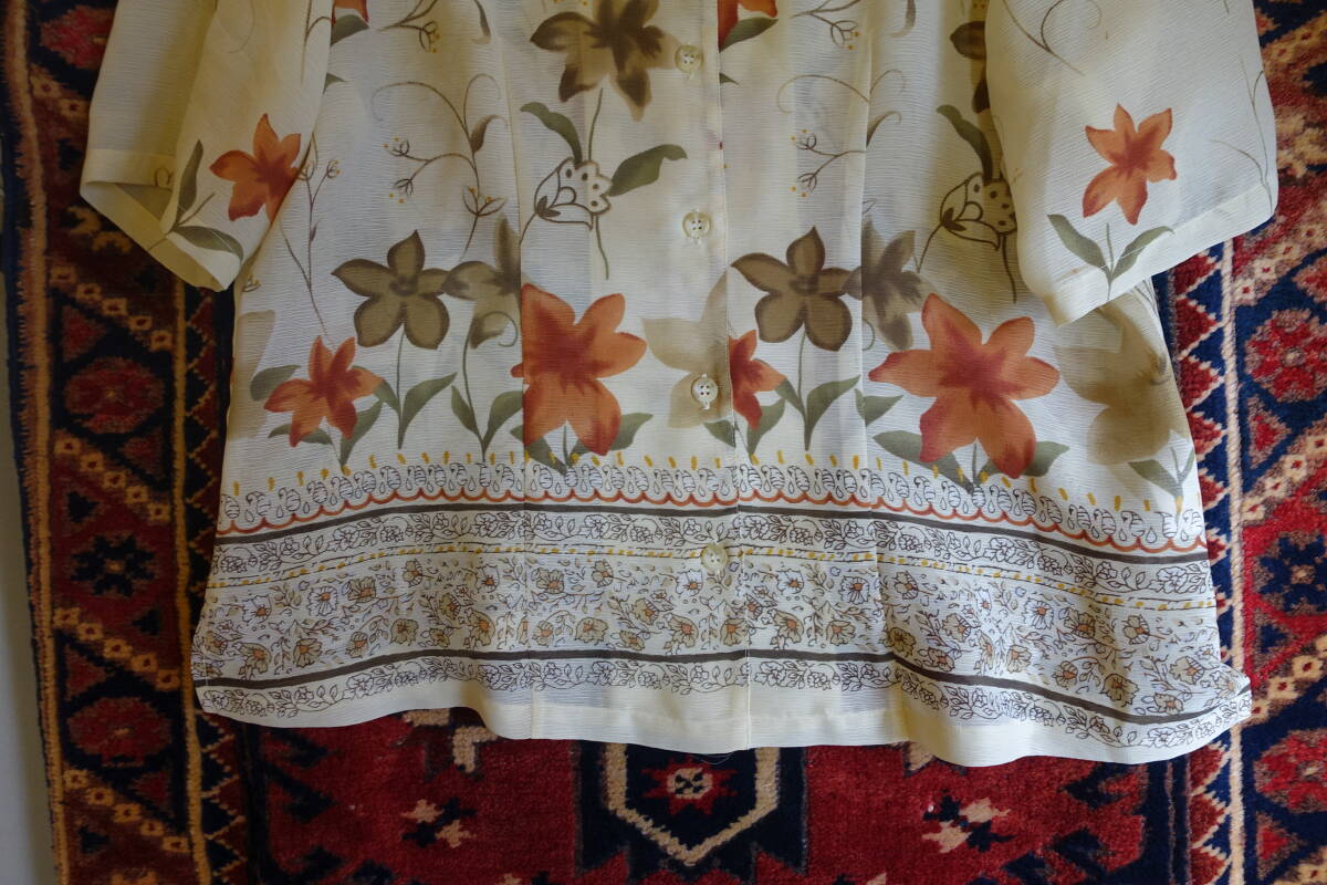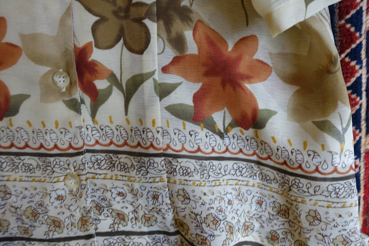 ○[70s80s90s vintage ヴィンテージ 花柄 シアー レトロシャツ]USED古着 昭和レトロ・モダン・モッズ