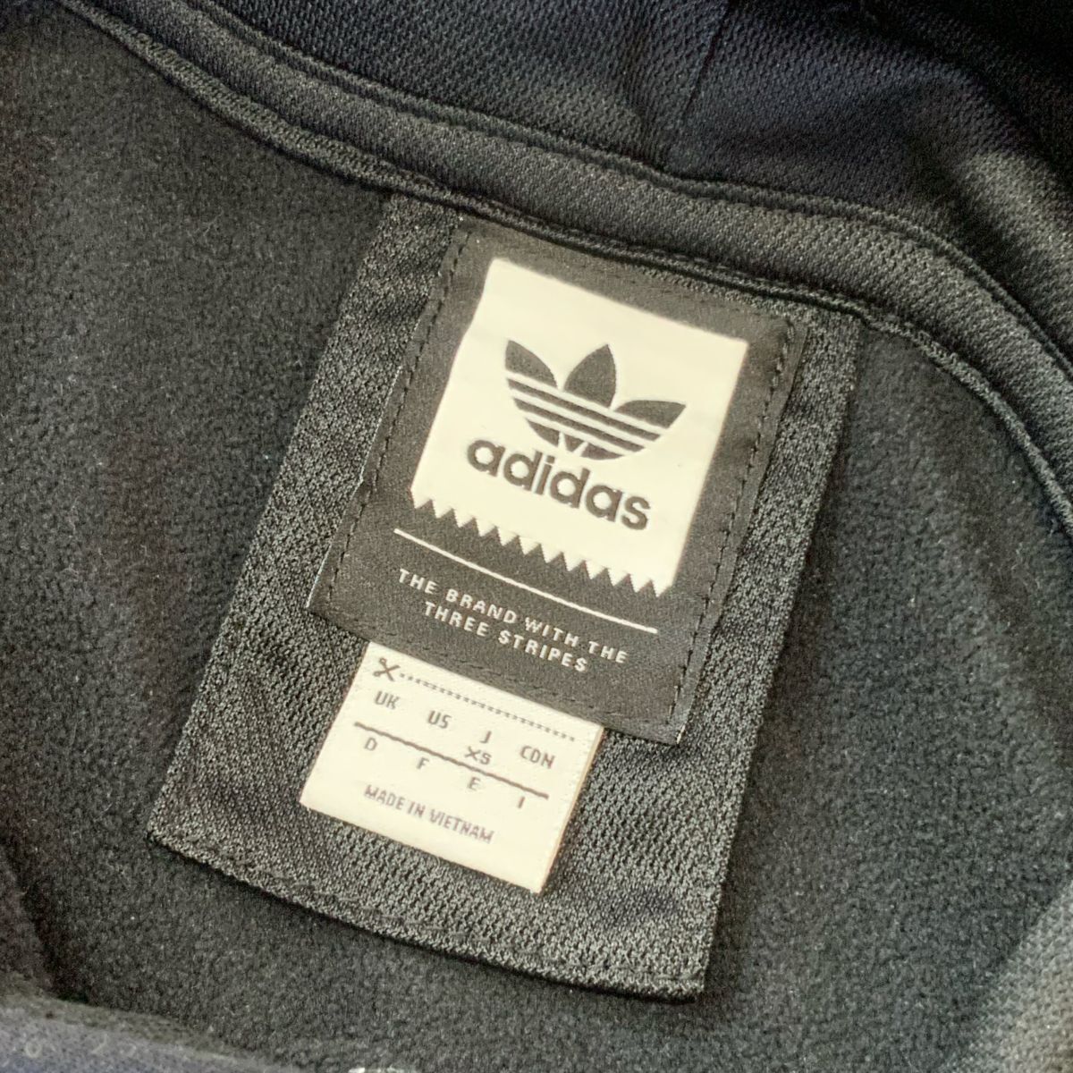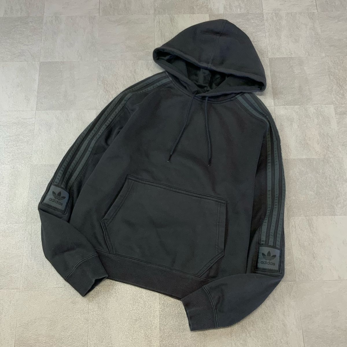 adidas アディダス スリーストライプ トレフォイルロゴ フーディパーカー メンズ XSサイズ ブラック