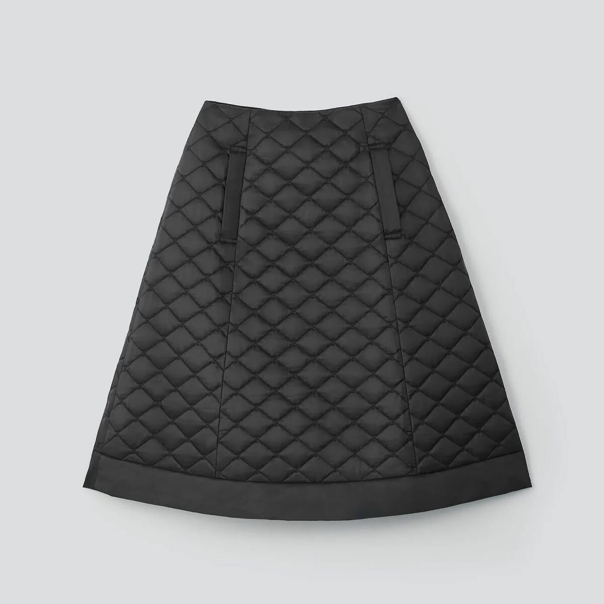 「Fロゴ」のキルティングを使用したミディ丈スカートです。