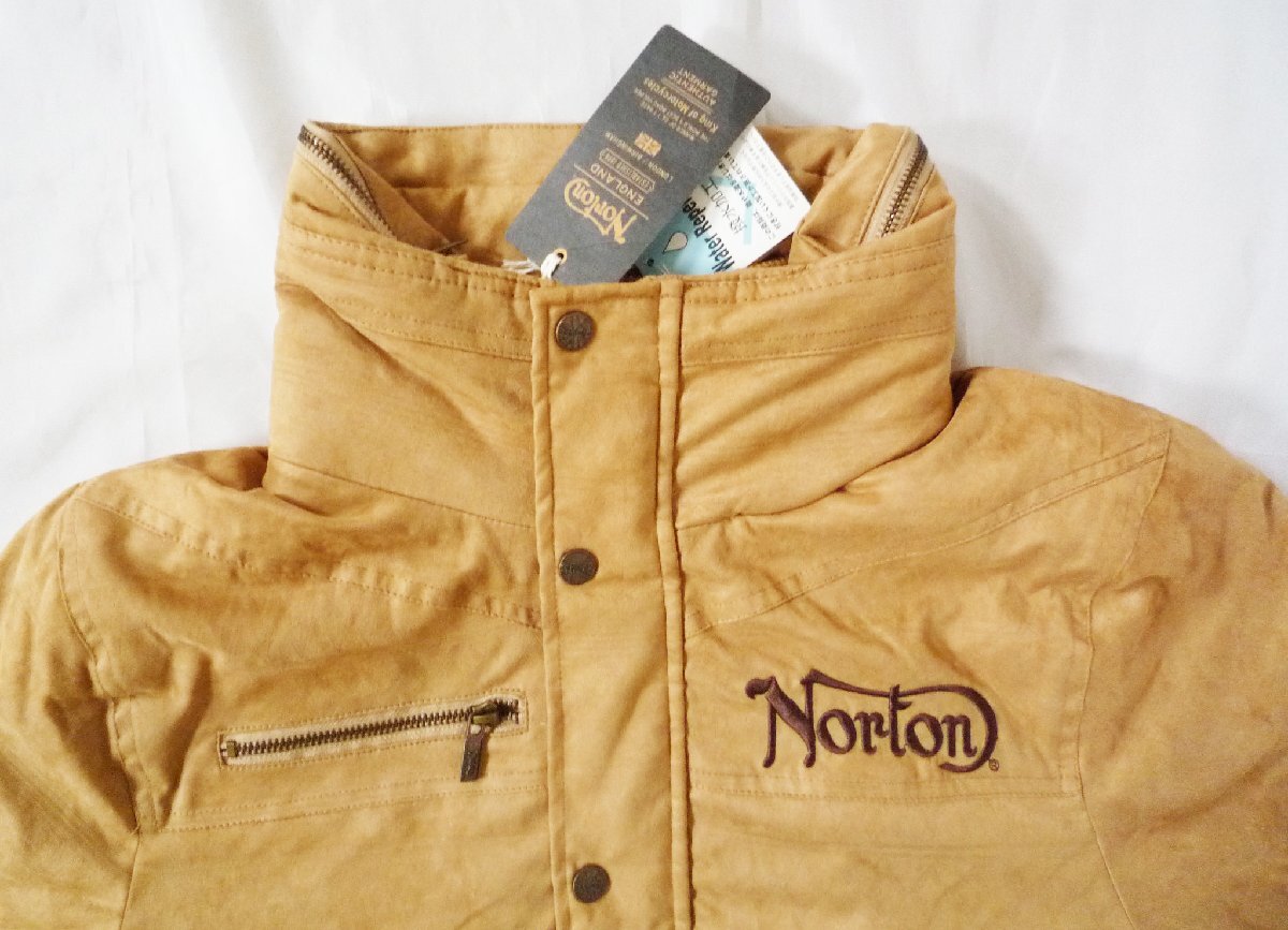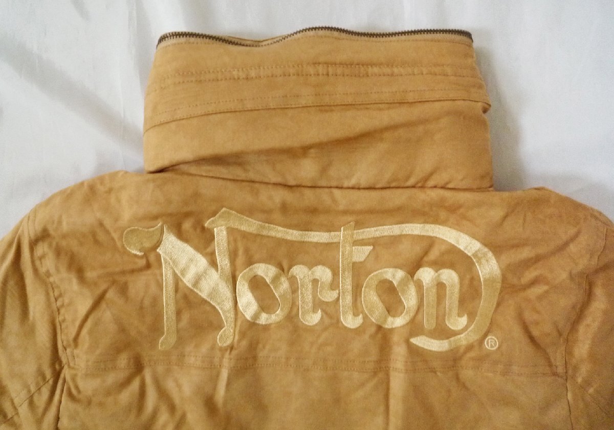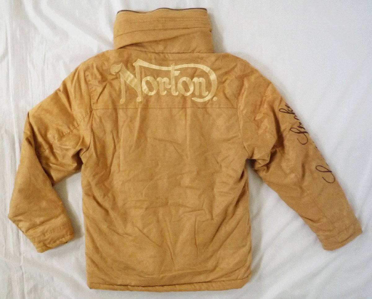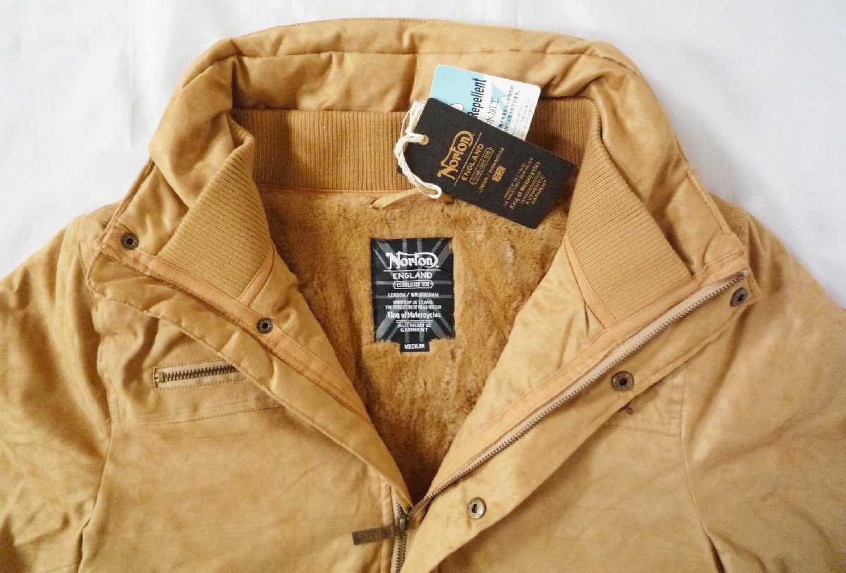 NORTON ノートン ポリスウエード総柄エンボスジャケット ボアジャケット 裏ボア インフード 刺繍ロゴ キャメル ラクダ色 Mサイズ