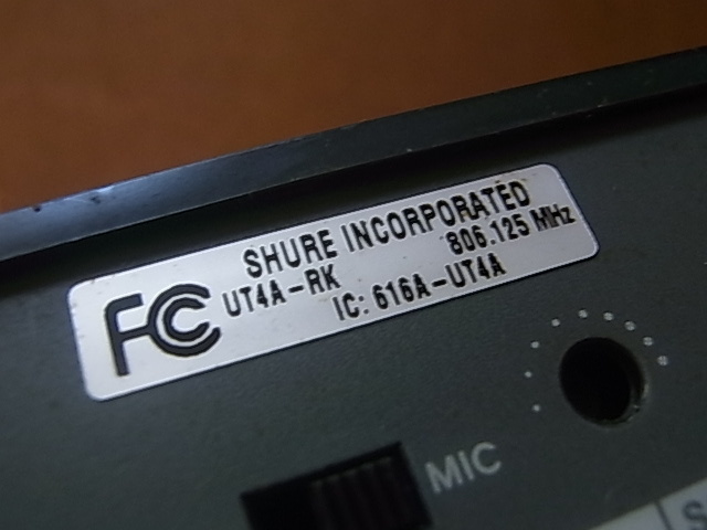 SHURE UT4 ワイヤレスレシーバー 806.125MHz 送料410円 中古品