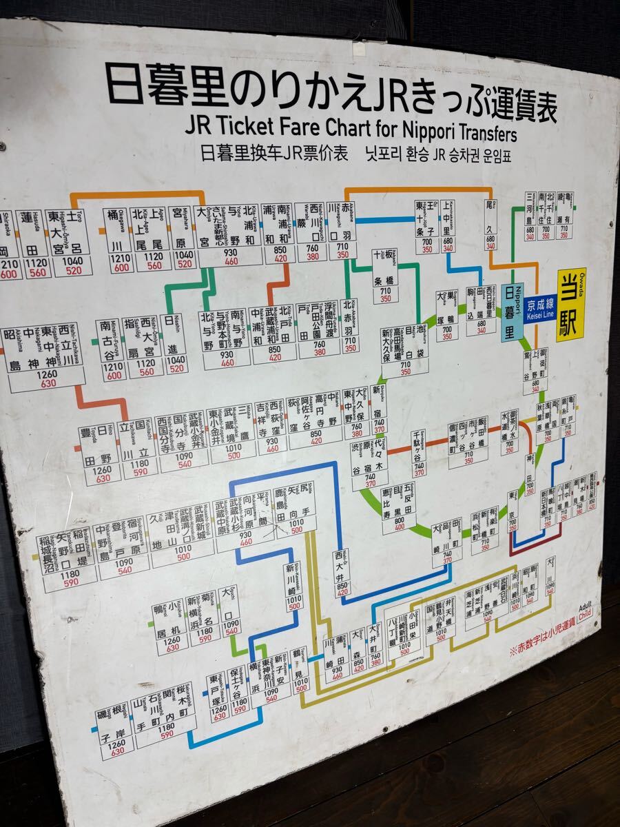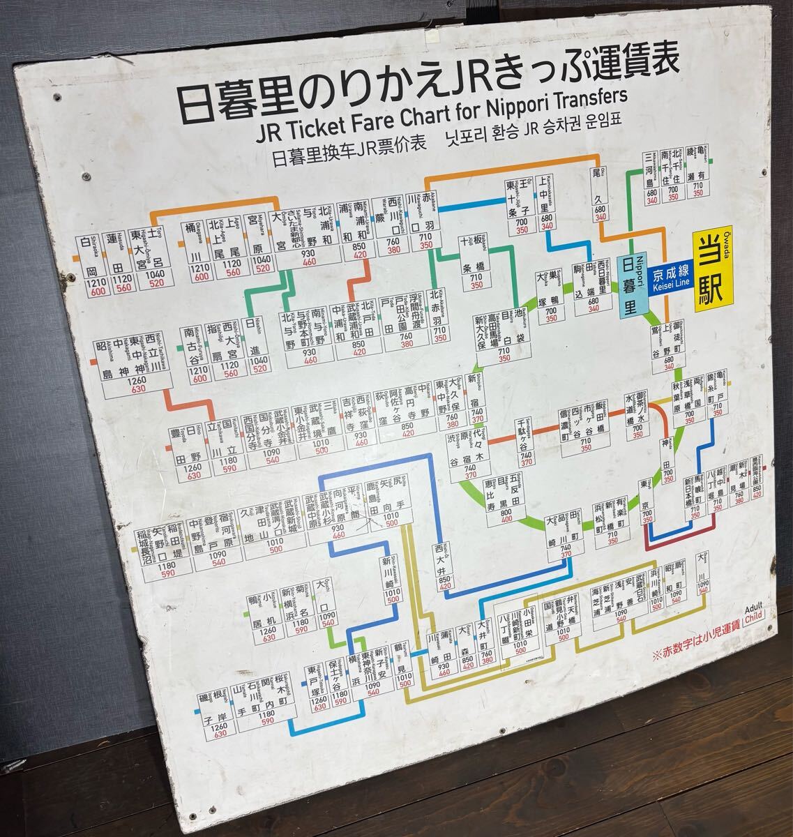 商品名 : 日暮里のりかえJRきっぷ運賃表