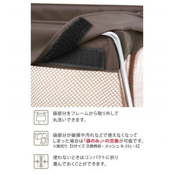 | 素材・材質 | 袋部分:ナイロン フレーム:スチール(表面:クロームメッキ) 底板:2.5mm 低発泡ポリエチレン |