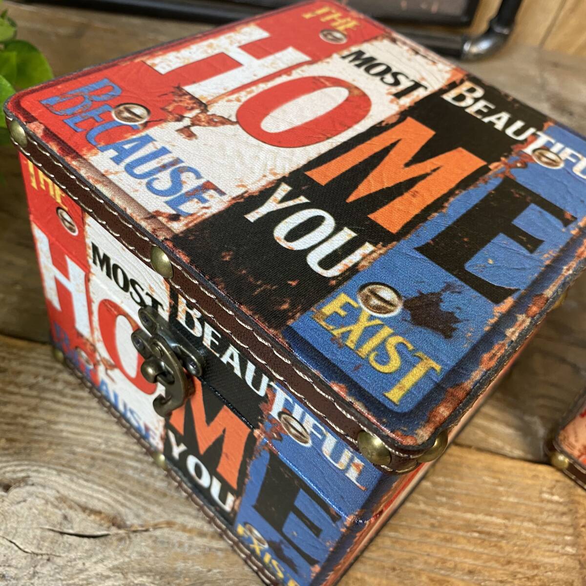 ◆◇商品詳細◇◆ アンティーク調小物入れ2点セット 古びた雰囲気のヴィンテージ風BOX型小物入れ2点セットです。こちらの商品は2種類の柄のセット価格になります。鍵フック付きでオシャレなデザインです。今注目の男前インテリアにぴったりなオシャレな一品です♪小物収納、机の整理整頓に一役かう商品ですよ。大人インテリアの雰囲気アップに役立ちそうですね。アンティーク調なのでヴィンテージの風合いもお楽しみいただけます。小物入れにはもちろん、ショップのディスプレイ、フローリングの洋室にも合わせやすいですよ♪2点セットでさらにお買い得価格です!アンティーク調雑貨が送料無料のこの価格!ほかでは買えないこの機会にぜひ(^-^) 【商品状態説明】 美品。 完成品になります。 【サイズ】1点分 横幅:15㎝ 奥行:15㎝ 高さ:12cm 【素材】 ウッド(MDF)、合成ビニールレザー 【カラー】 ------- 【完品参考価格】 ¥4,700 | ◆◇発送方法◇◆ ●送料は基本無料ですが、沖縄・離島などにお住まいの方はご負担ください。 (沖縄・離島の方はメールにてご連絡いただければ、送料をお知らせいたします。) ●ヤマト運輸・佐川急便・第一貨物のいずれかにて配送いたします。 (運送会社の指定はできません。ご了承ください。) ●日時・時間指定のある方や、お問い合わせ(追跡)番号をご希望の方は取引連絡の際にお知らせください。 | |