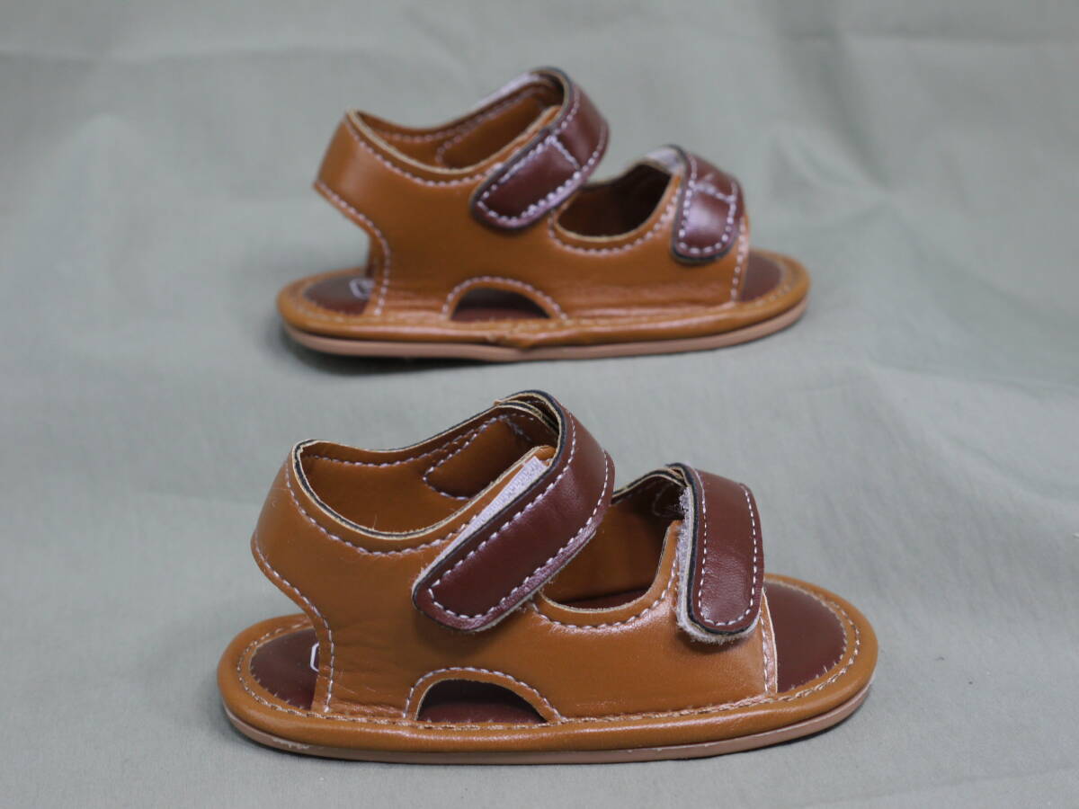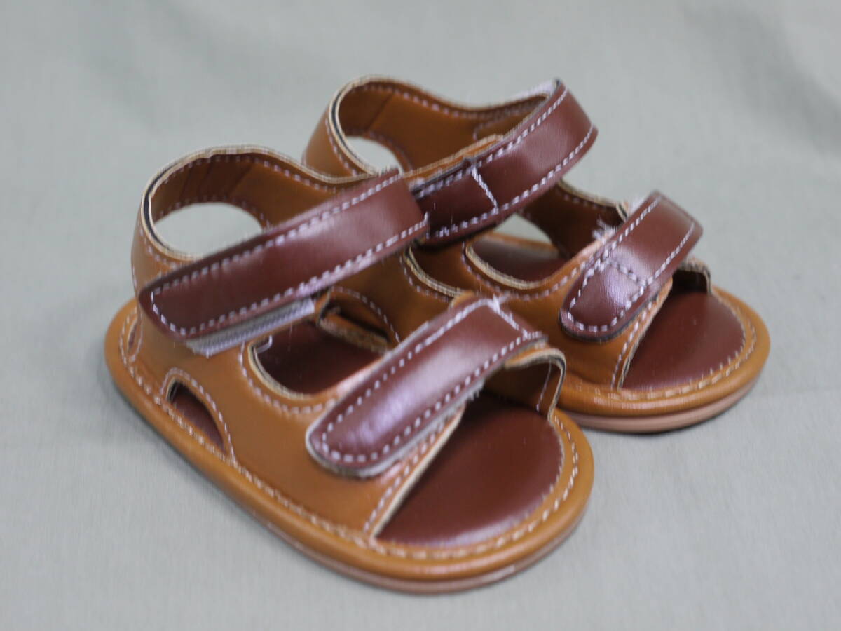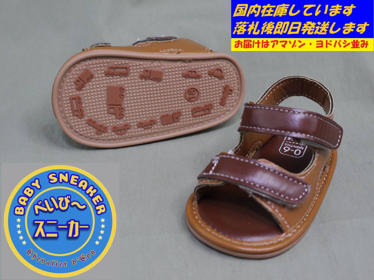 ★対応足サイズ10~11cm★ゴム底ベビーサンダル★外履き用★小さい足の子向け/簡単着脱◆カラー:ブラウン◆ K07-C-18
