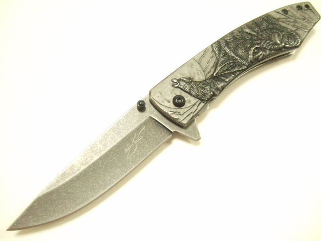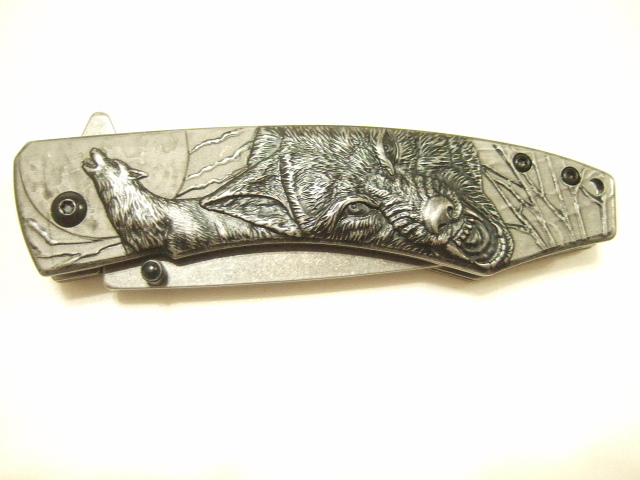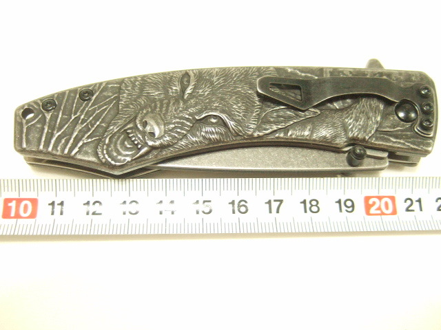商品名 | 横浜最新 鑑賞用 折り畳みナイフ♪魅惑の狼ウルフ アートナイフ アウトドアキャンプ スチール製 全長21cm |