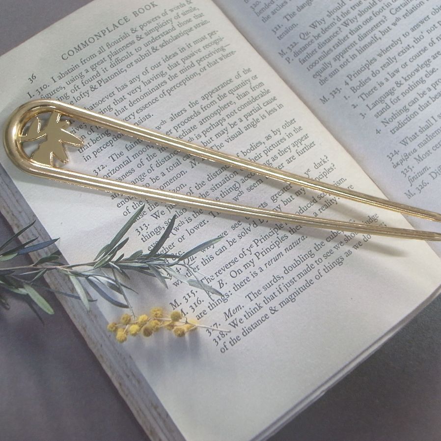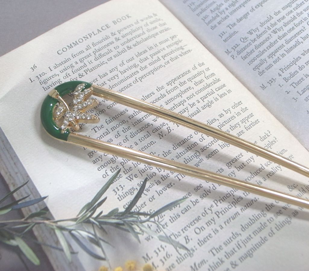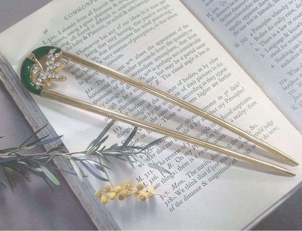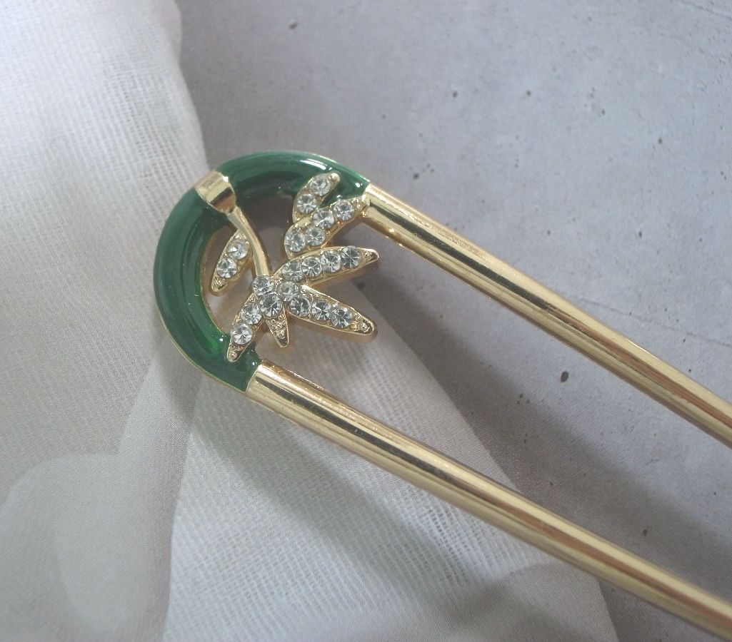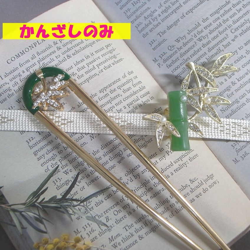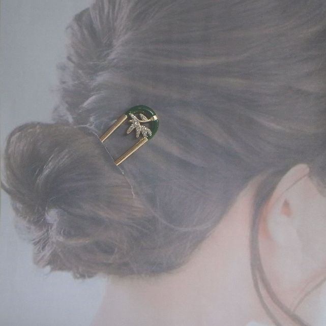 LEAF CLUB ♪簪 かんざし U字コーム コーム ヘアアクセ 笹の葉 笹 竹 葉 葉っぱ グリーン/緑 ゴールド/金