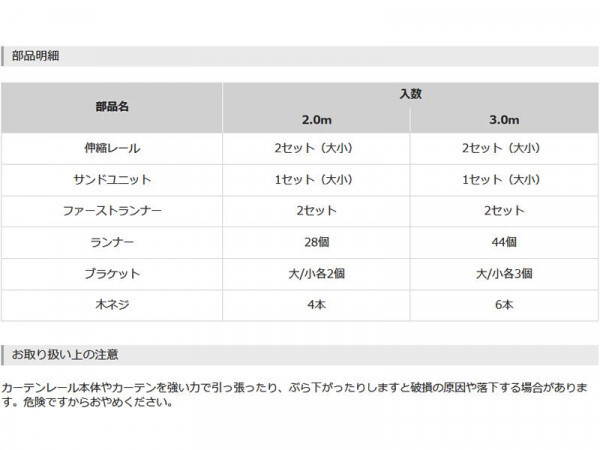 | サイズ | 使用範囲:1.2~2.0m 個装サイズ:117×12×6cm |
