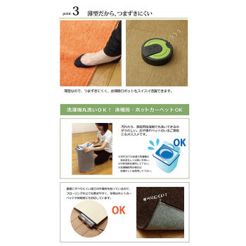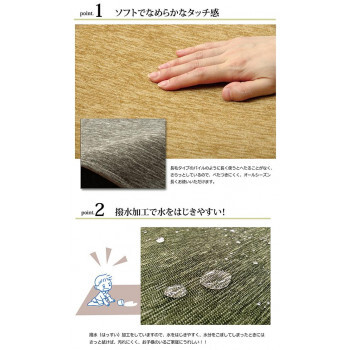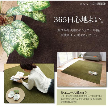 | 無地のシェニール織ラグです。毛足が短いためお掃除も簡単です。裏面にはフローリングの上でもご使用できるよう、滑りにくい加工を施しております。ホットカーペットカバーとしてもご使用できます。 |