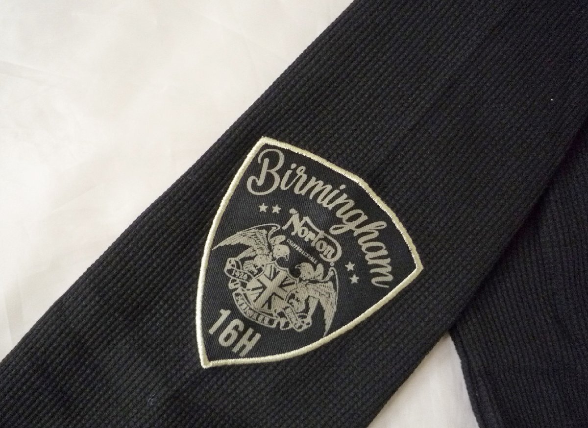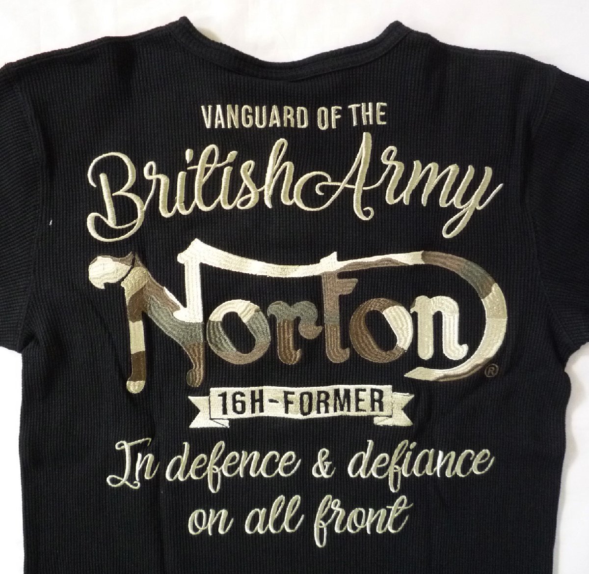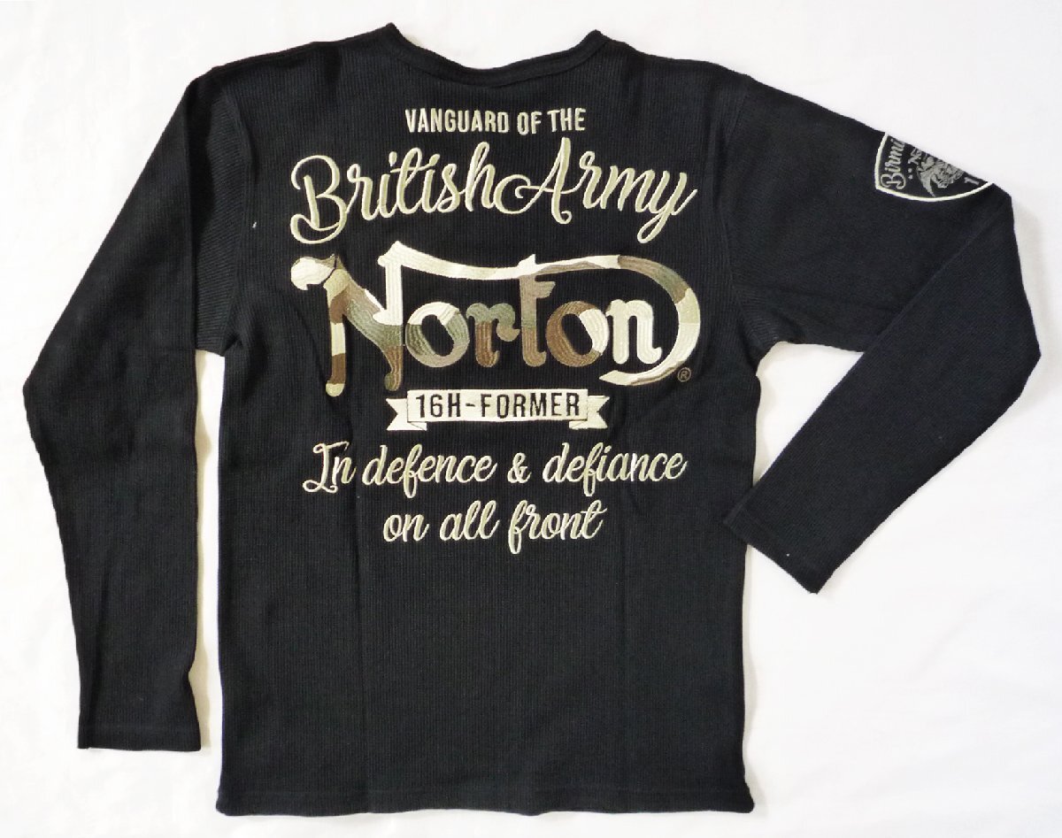 ノートン NORTON 長袖Tシャツ ヘンリーネック ワッフル編み 2つボタン 刺繍 XLサイズ ブラック 黒