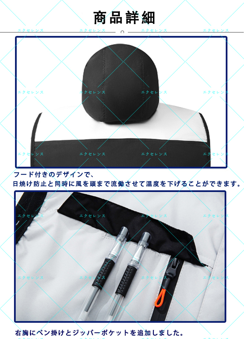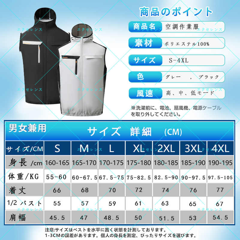 ★【セット内容】】ベスト*1、 30000mAhバッテリー*1、 USB充電ケーブル*1、 ファン*2 、 DC接続ケーブル*1  。