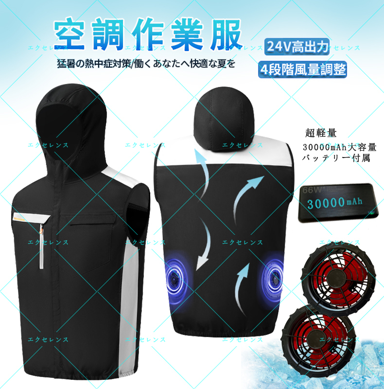 新品《Lサイズ》ブラック【24V超高出力】空調作業服 ファン付き 30000mAh大容量バッテリー付属 ファン付き作業服ベスト 薄型 25-02