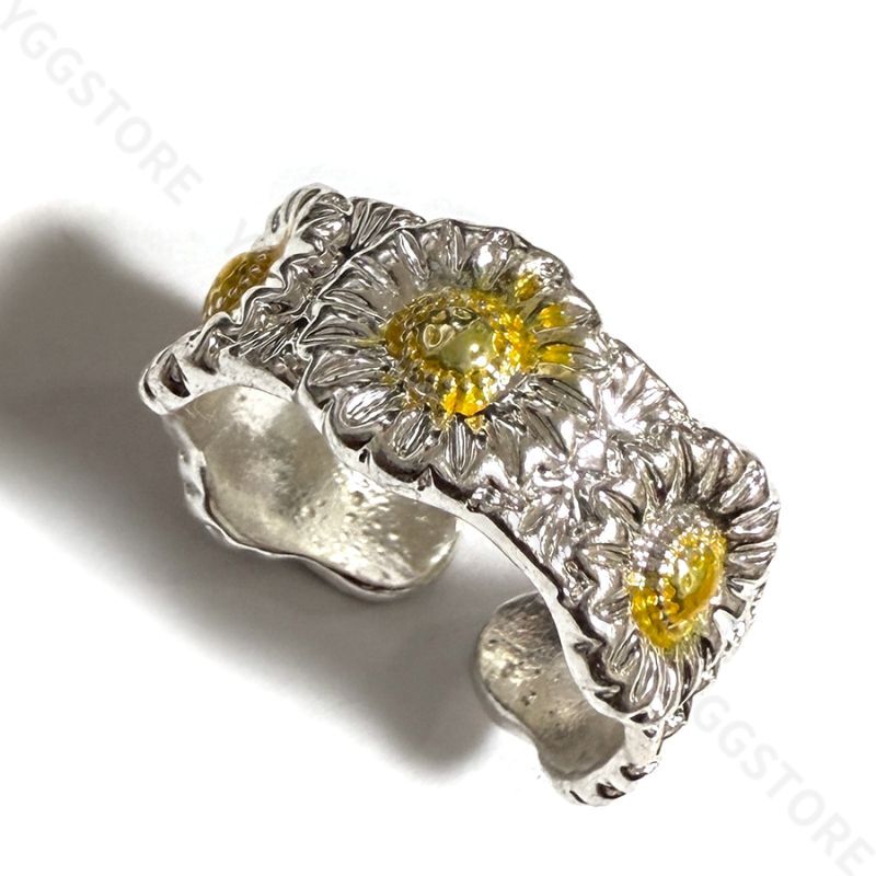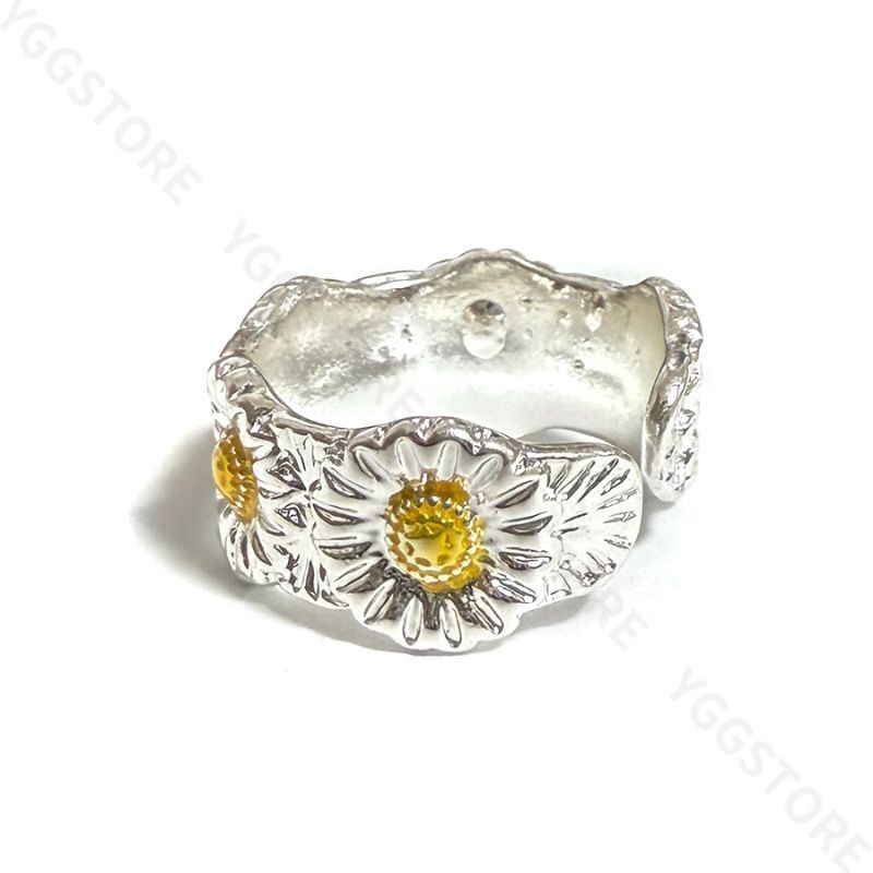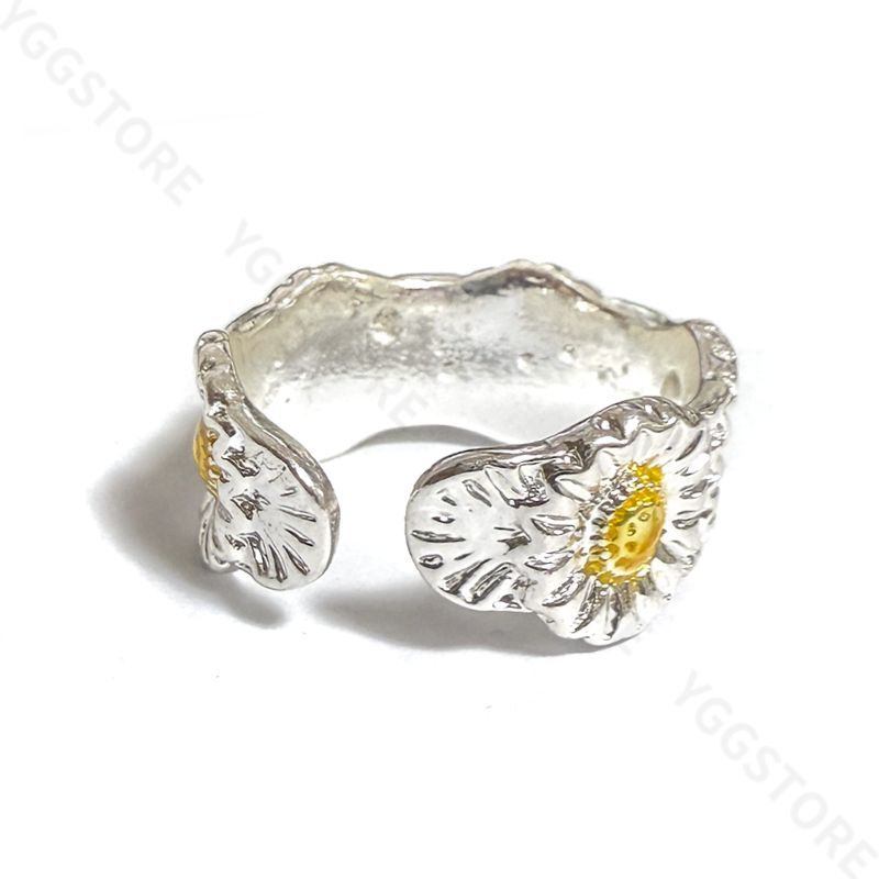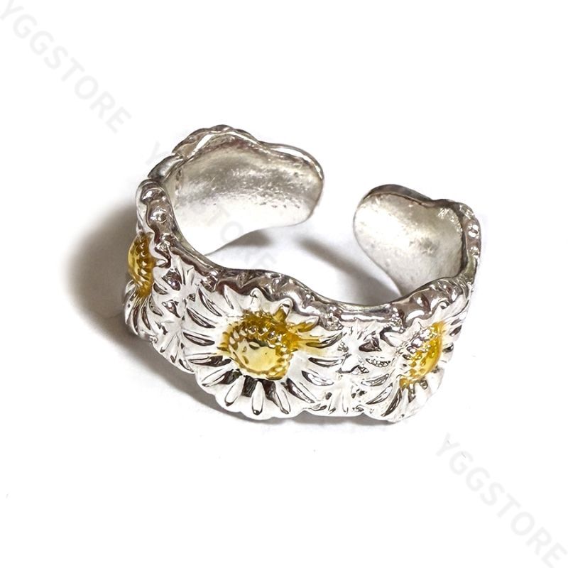 YGG★デイジー モチーフ リング 指輪 シルバー ゴールド 太め フリーサイズ 花 BIGBANG G-DRAGON ヒナギク メンズ レディース 男女兼用